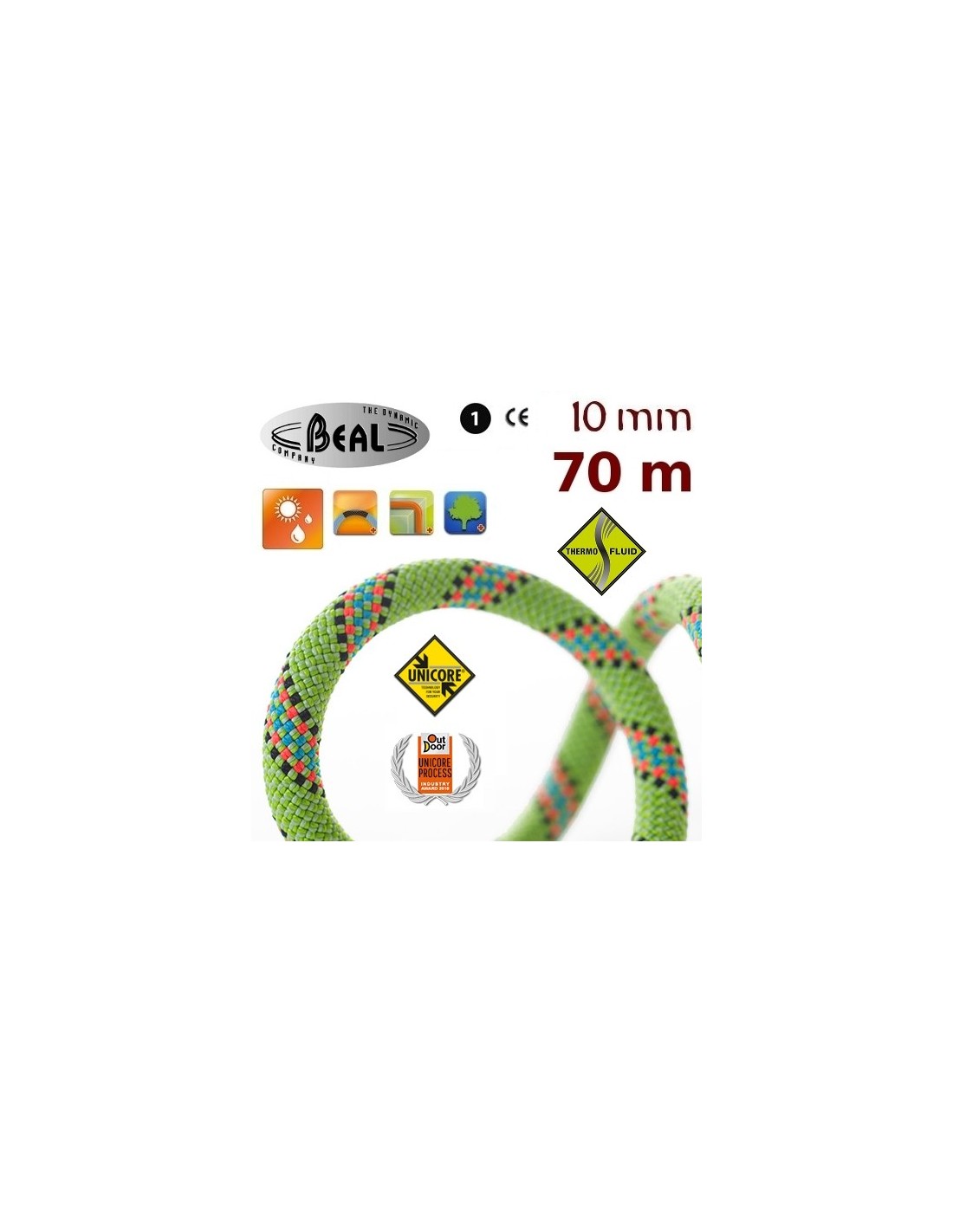 Cuerda dinámica polivalente para uso en simple, de eficacia probada, que integra todos los beneficios de seguridad y trazabilidad de las cuerdas Beal, y además incorpora el tratamiento impermeabilizante de la funda "Dry Cover" de Beal (DCVR).