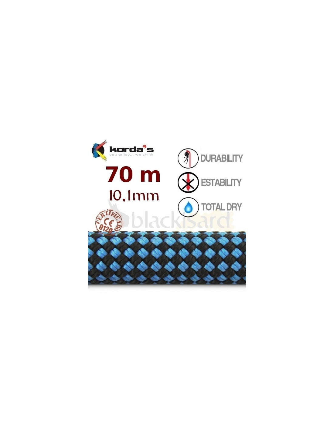 Total dry: Acabado termoquímico con Fluocarbono. La cuerda es impermeable, absorbe menos agua, dura más y se retrasa el congelamiento.