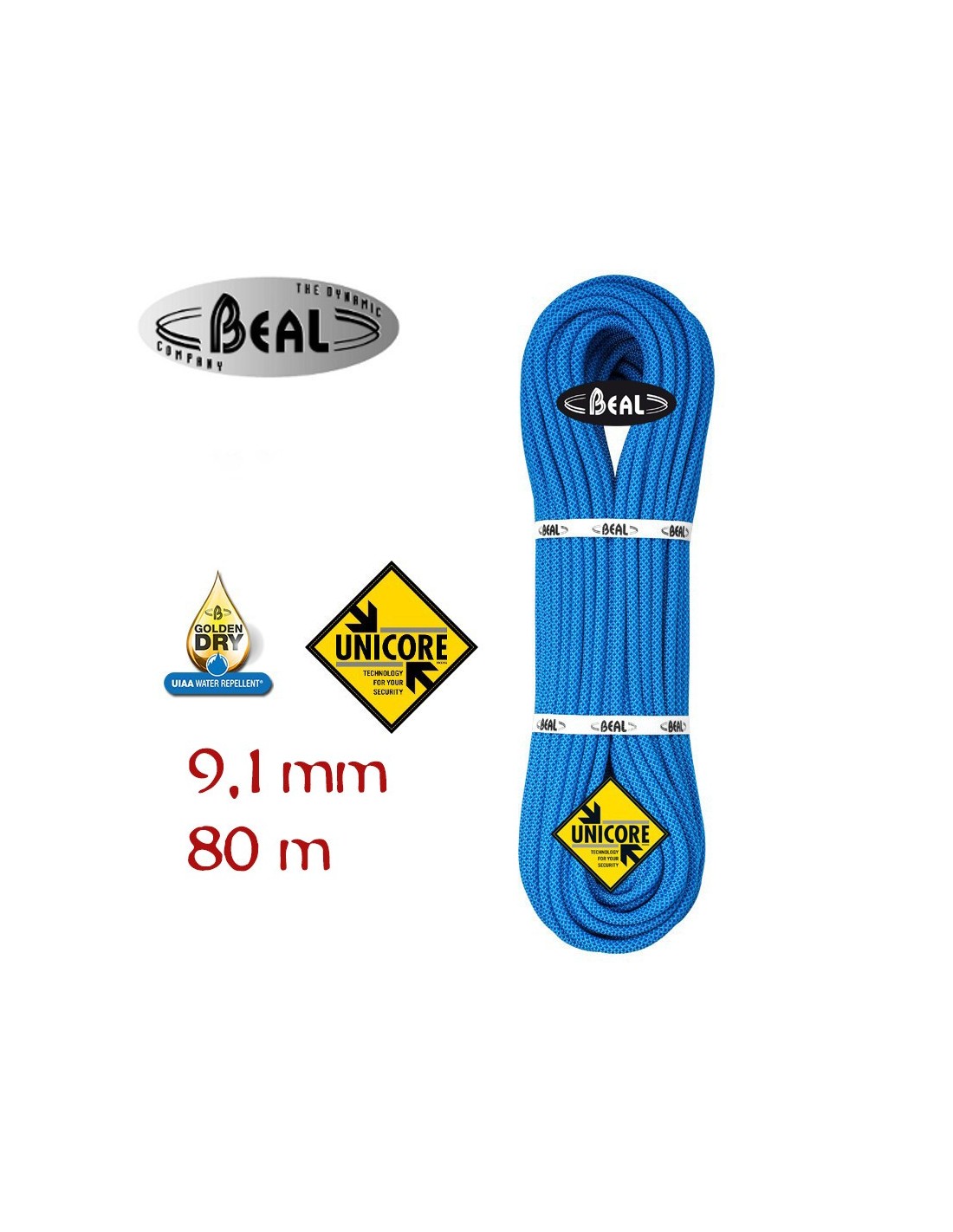 CUERDA DINÁMICA JOKER 9,1mm GOLDEN DRY UNICORE (80m) - BEAL