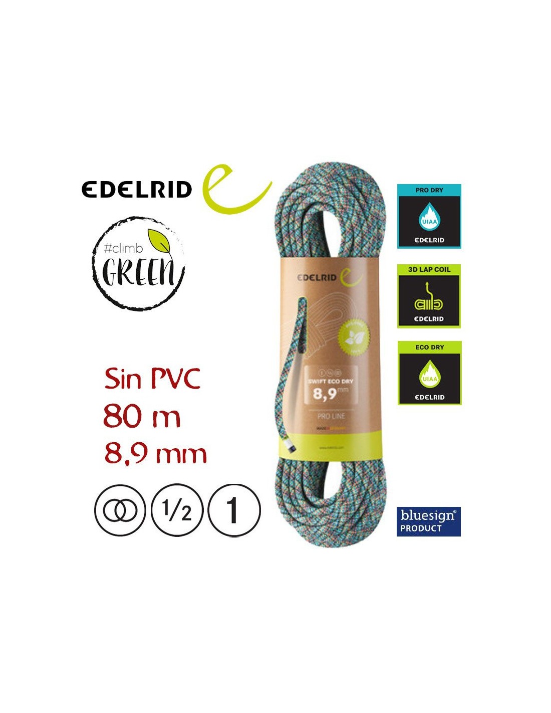 CUERDA TRIPLE HOMOLOGACIÓN SIN PVC SWIFT ECO DRY 8,9 M (80 M) - EDELRID