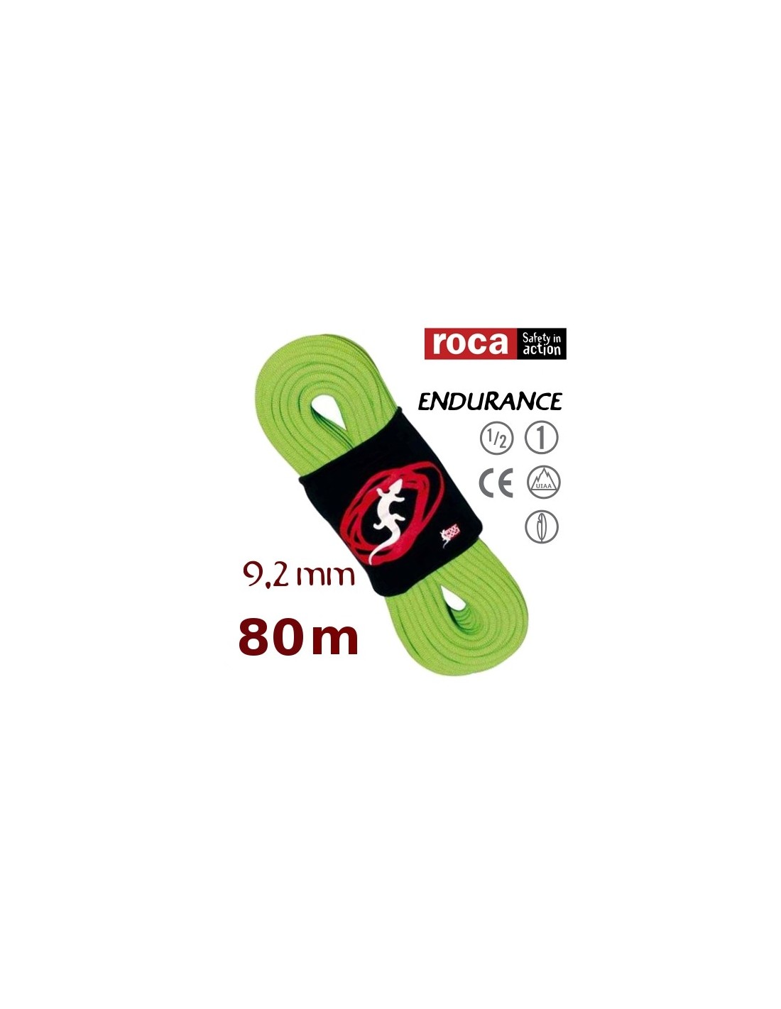 Cuerda Dominator de 80 m de la marca Fixe-Roca de 9,2 mm de diámetro. Esta cuerda se considera una auténtica todo-terreno, ya que se recomienda a escaladores deportivos a los que guste de ligereza y fluidez, y también a escaladores clásicos de varios largos, ya que dispone de triple homologación: simple, doble y gemela.