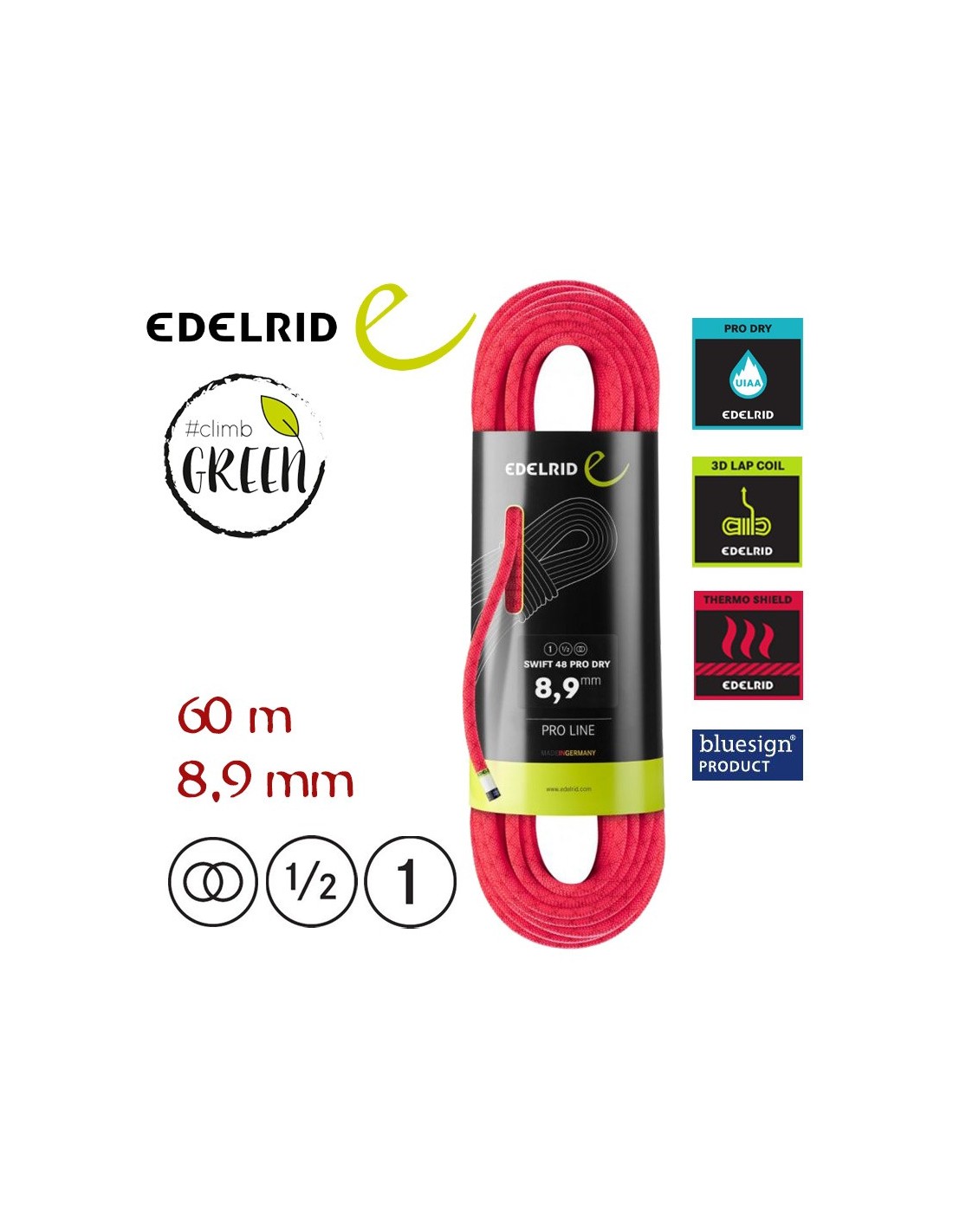 CUERDA TRIPLE HOMOLOGACIÓN SWIFT 48 PRO DRY 8,9 mm 60 M (PINK) - EDELRID
