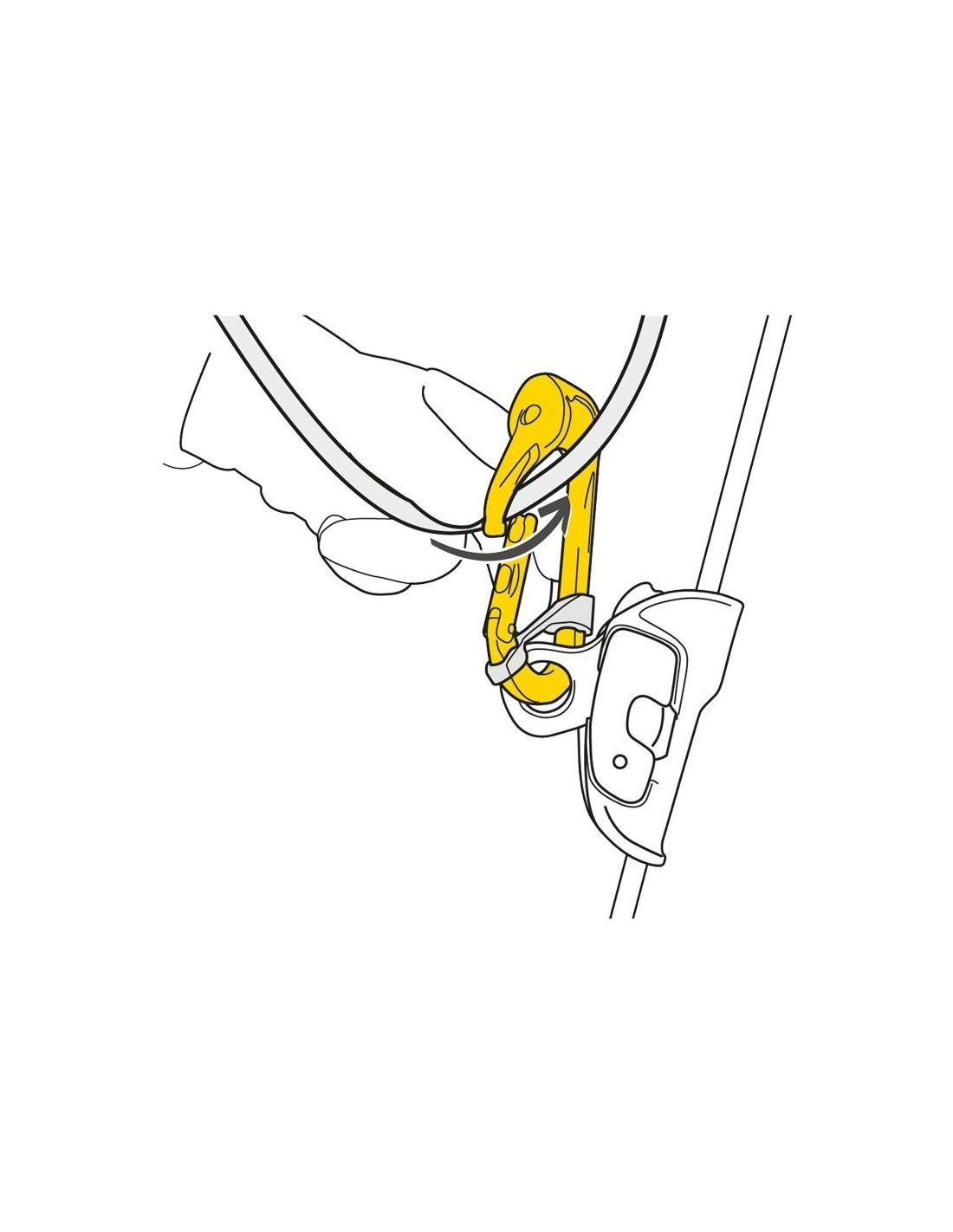 La ROLLCLIP A es una polea mosquetón con abertura del gatillo lado polea para facilitar la instalación de la cuerda cuando la polea está fijada al anclaje.
