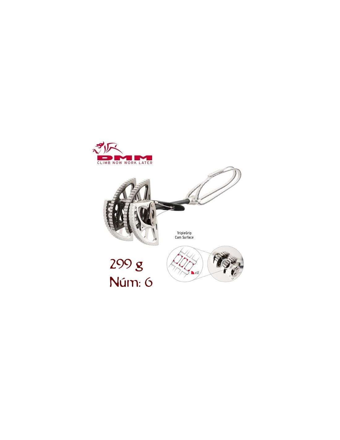 Los Dragon Cams incorporan más rugosidad en cada leva, esta es la base del revolucionario sistema TripleGrip, lo cual incrementa la fricción entre el Cam y la roca x12. El resultado es un mayor poder de sujeción y que el friend "camina" menos, especialmente en roca blanda o sucia.