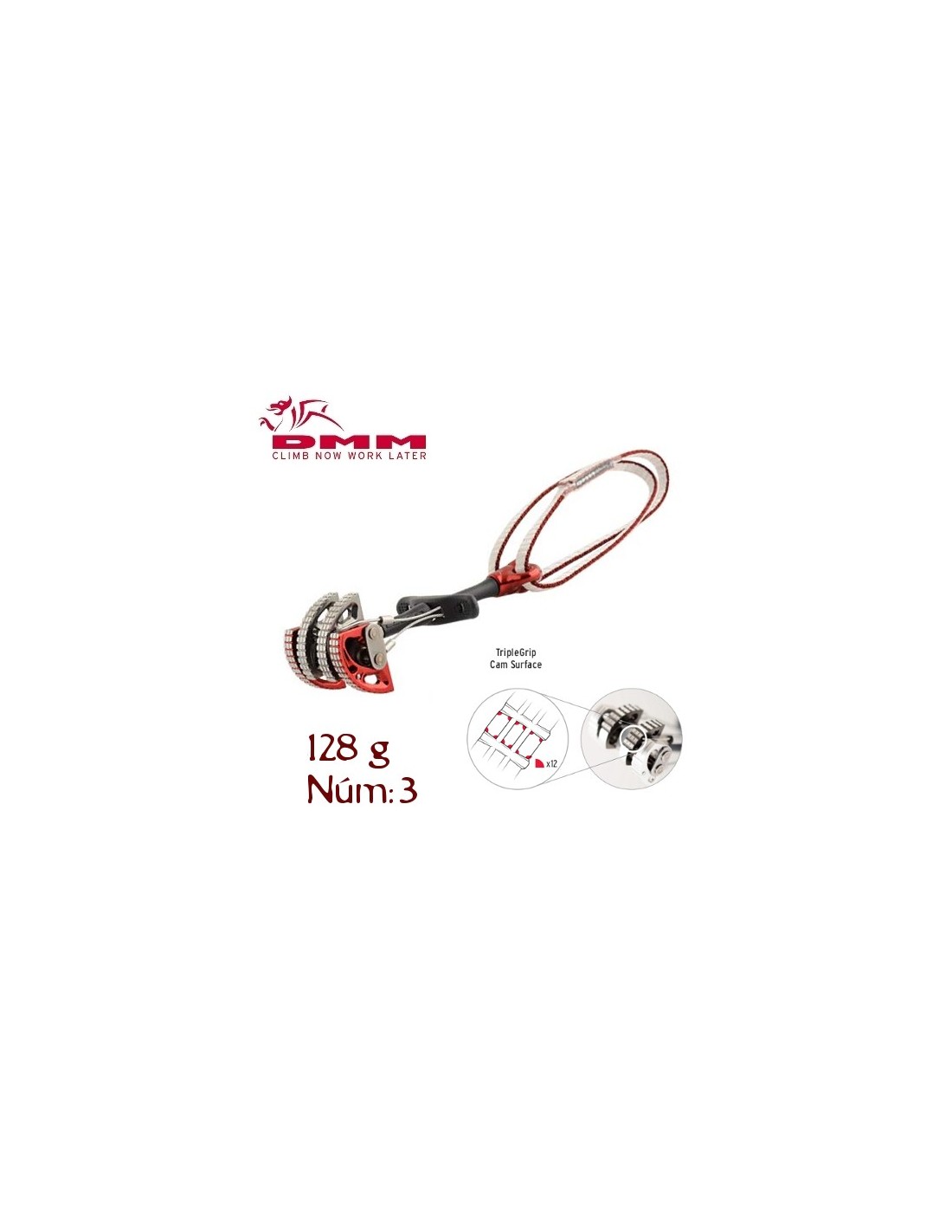 Los Dragon Cams incorporan más rugosidad en cada leva, esta es la base del revolucionario sistema TripleGrip, lo cual incrementa la fricción entre el Cam y la roca x12. El resultado es un mayor poder de sujeción y que el friend "camina" menos, especialmente en roca blanda o sucia.