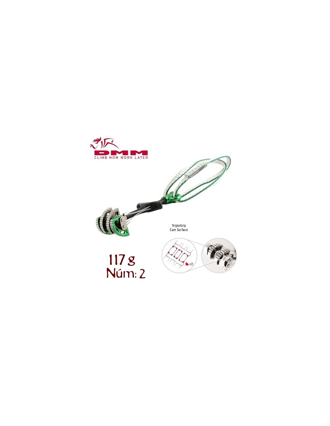 Los Dragon Cams incorporan más rugosidad en cada leva, esta es la base del revolucionario sistema TripleGrip, lo cual incrementa la fricción entre el Cam y la roca x12. El resultado es un mayor poder de sujeción y que el friend "camina" menos, especialmente en roca blanda o sucia.