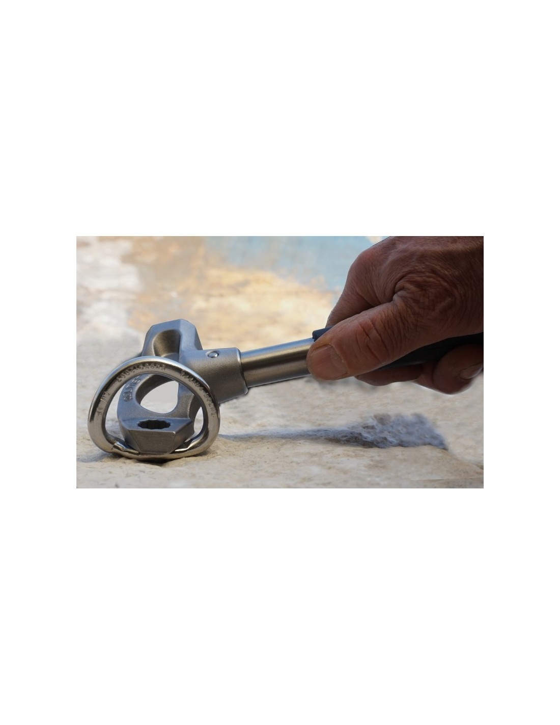 Mediante un simple y seguro sistema de agarre (M10/Ex13), utilizando una llave fija exagonal de 13mm, se puede fácil e instantáneamente inserir los adaptadores o las brocas originales triangulares que fabricamos exclusivamente para la realización manual en la roca.