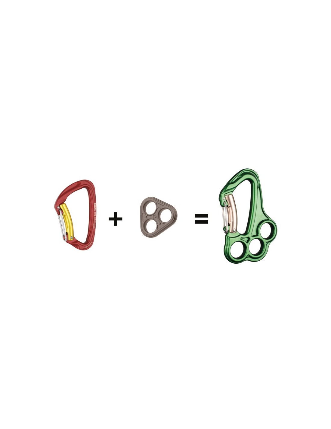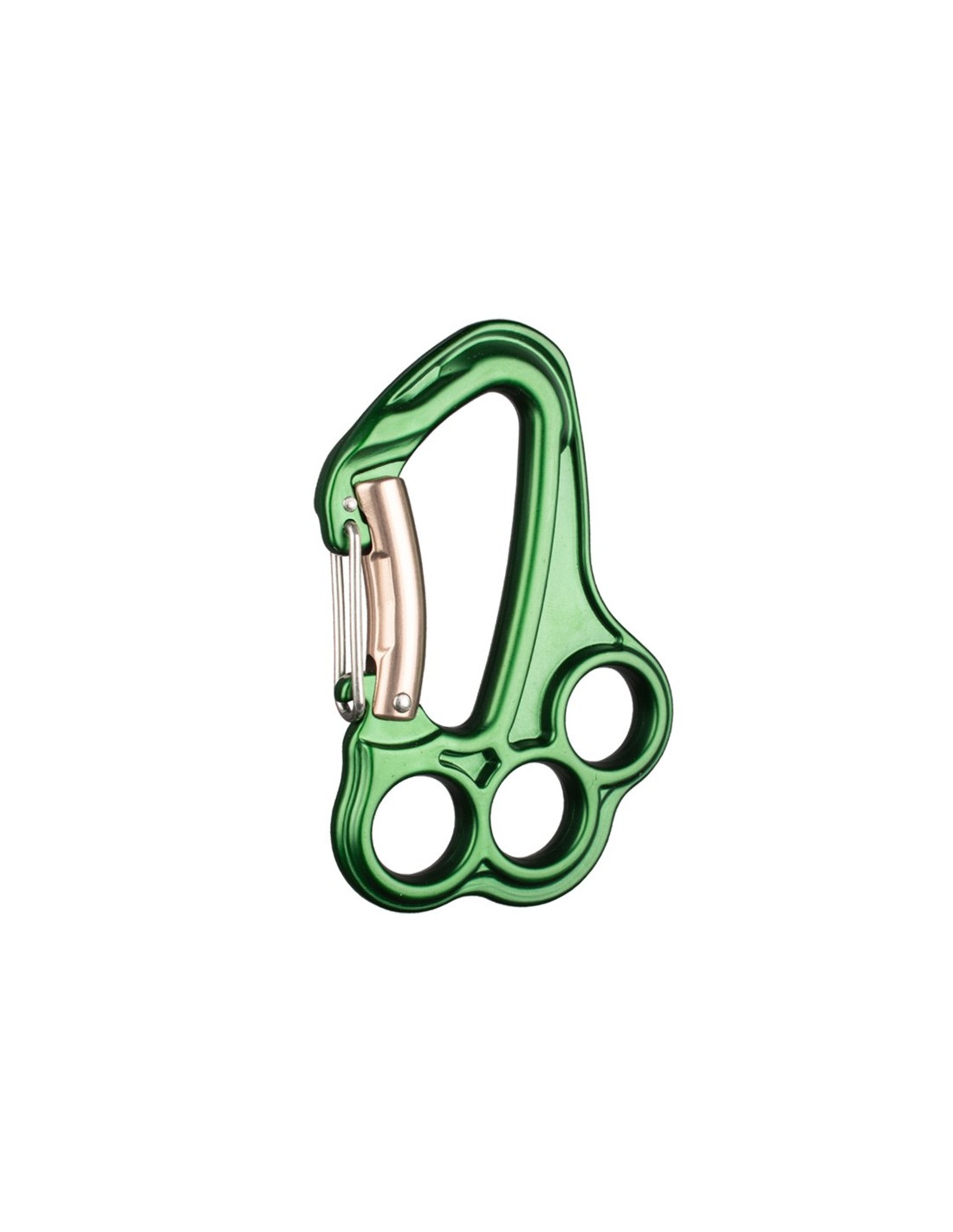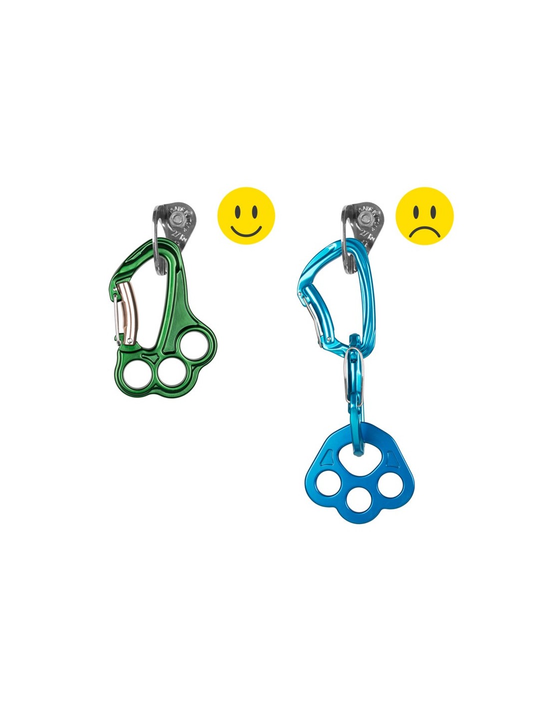 - Apertura mediante el sistema de puerta de alambre Twin-Gate, que no requiere ninguna maniobra adicional (por ejemplo, abrir y cerrar con rosca), lo que lo hace más seguro y rápido que otros sistemas. Además, permite evitar aberturas accidentales que pueden ocurrir, por ejemplo, debido al contacto con la roca, debido al paso incorrecto de la cuerda debido a la presión involuntaria de la mano.