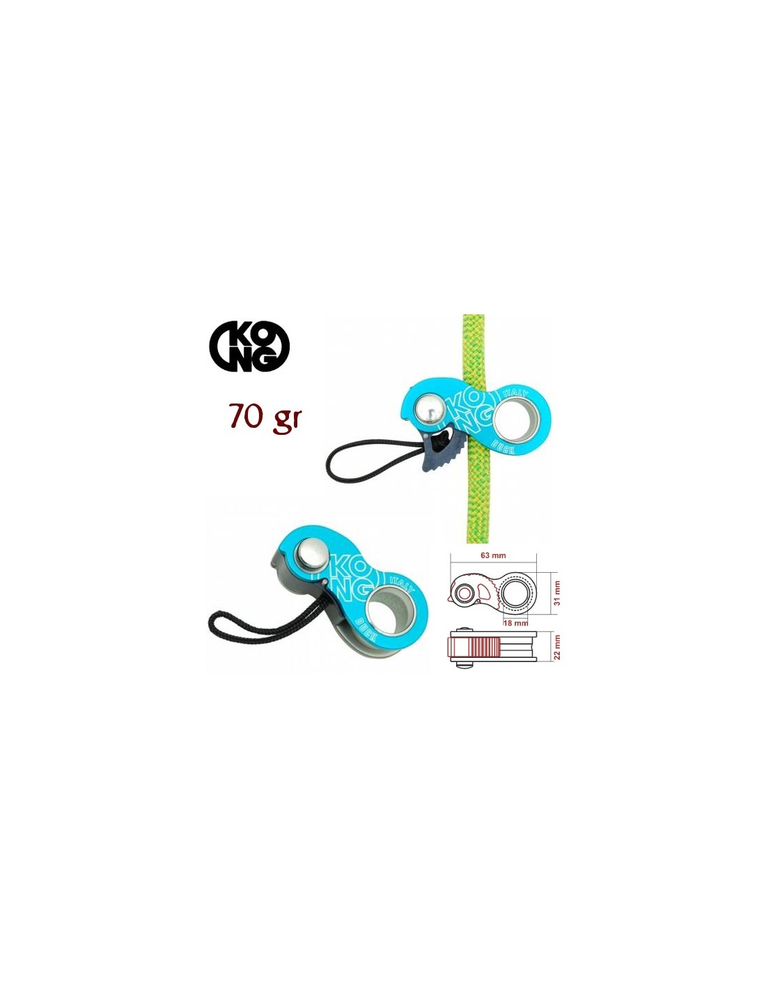 De dimensiones bastante reducidas, es fácil de introducir incluso con una sola mano. Además, el amplio orificio de enganche permite la rotación incluso de los mosquetones de seguro. Duck está pensado como bloqueador de emergencia útil en maniobras de recuperación, autorrescate, progresión y como regulador para equipo de amarre o daisy chain.
