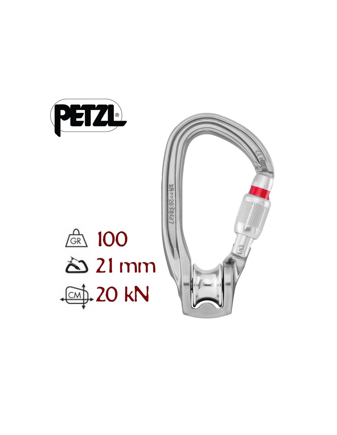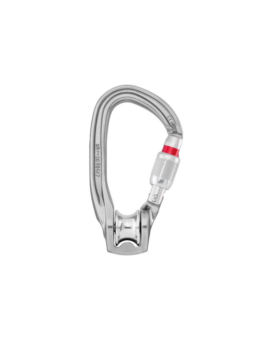 - SCREW-LOCK: bloqueo manual a rosca con indicador rojo visible cuando el mosquetón no está bloqueado.