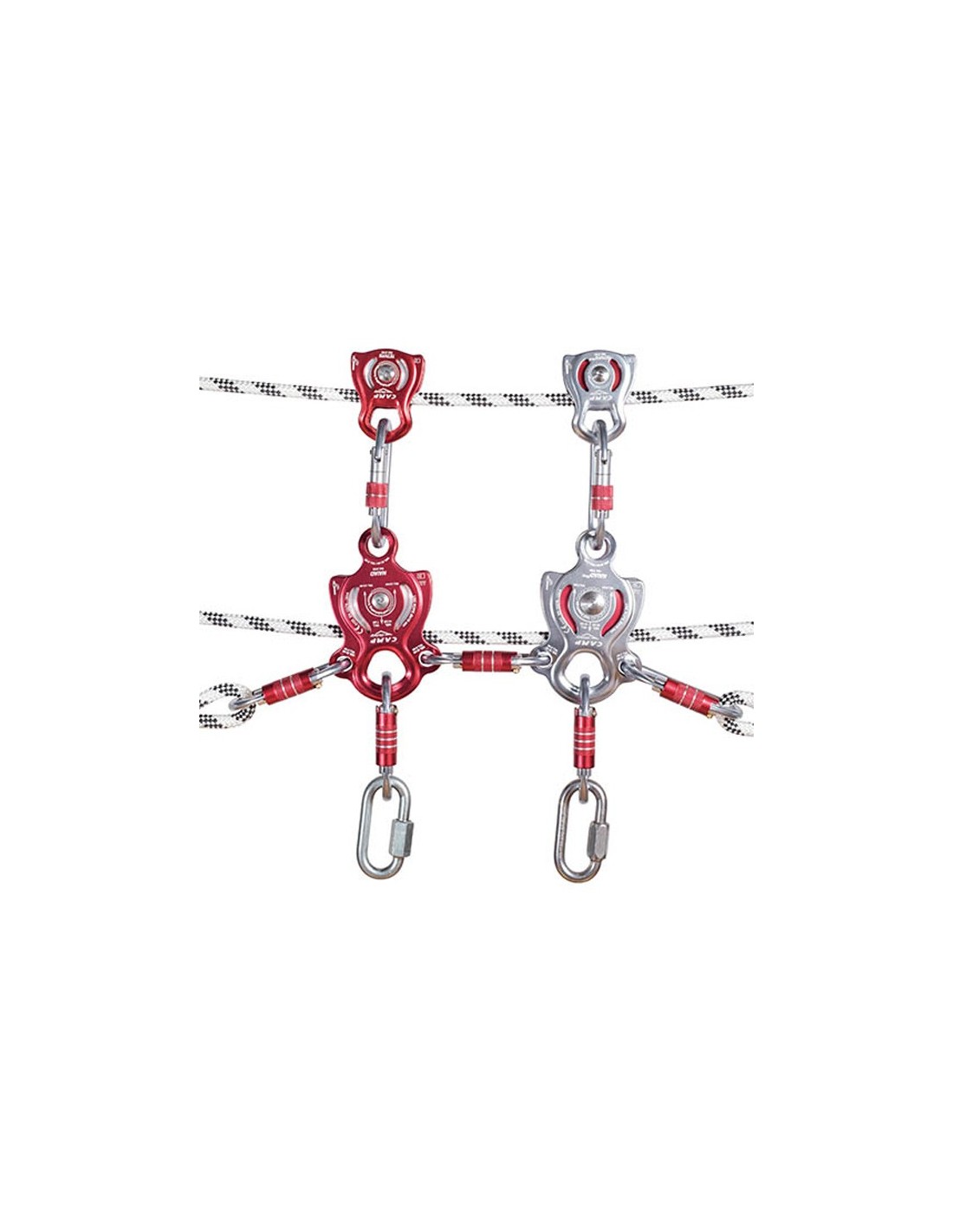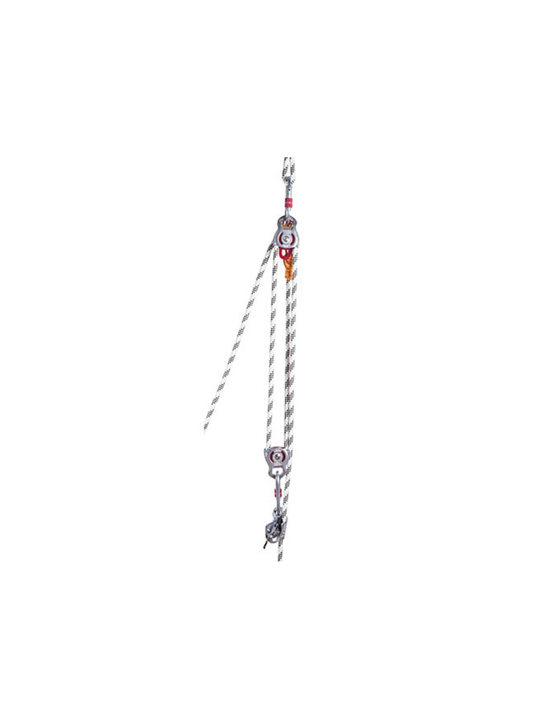 Ideal para izar petates con polipasto en pared o para realizar maniobras de autorrescate glaciar gracias a la posibilidad de instalar un nudo autoblocante en ambos lados (se recomienda usar cuerda de aramida).