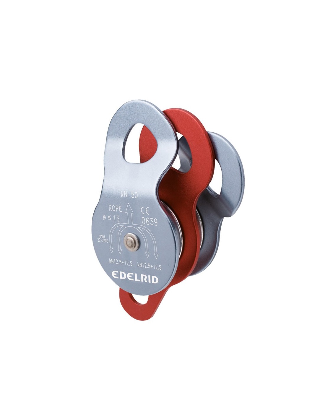 Polea de doble rodamiento de bolas con piezas laterales flexibles.