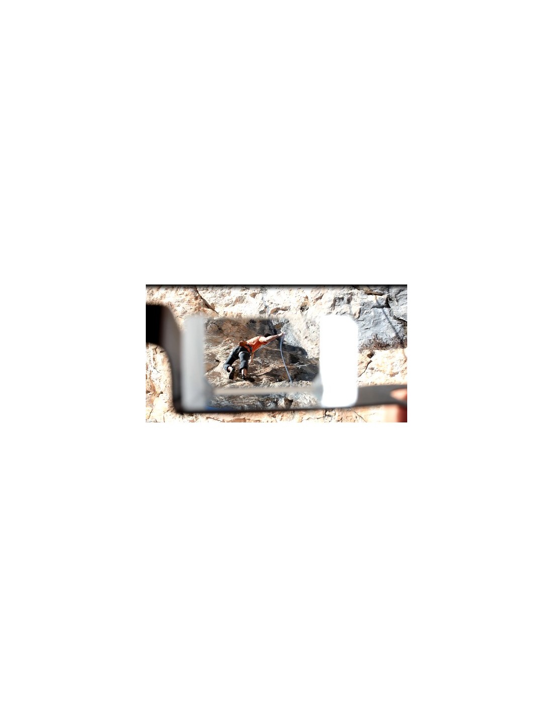 Gafas para asegurar en escalada que previene los dolores cervicales derivados de malas posturas al asegurar.