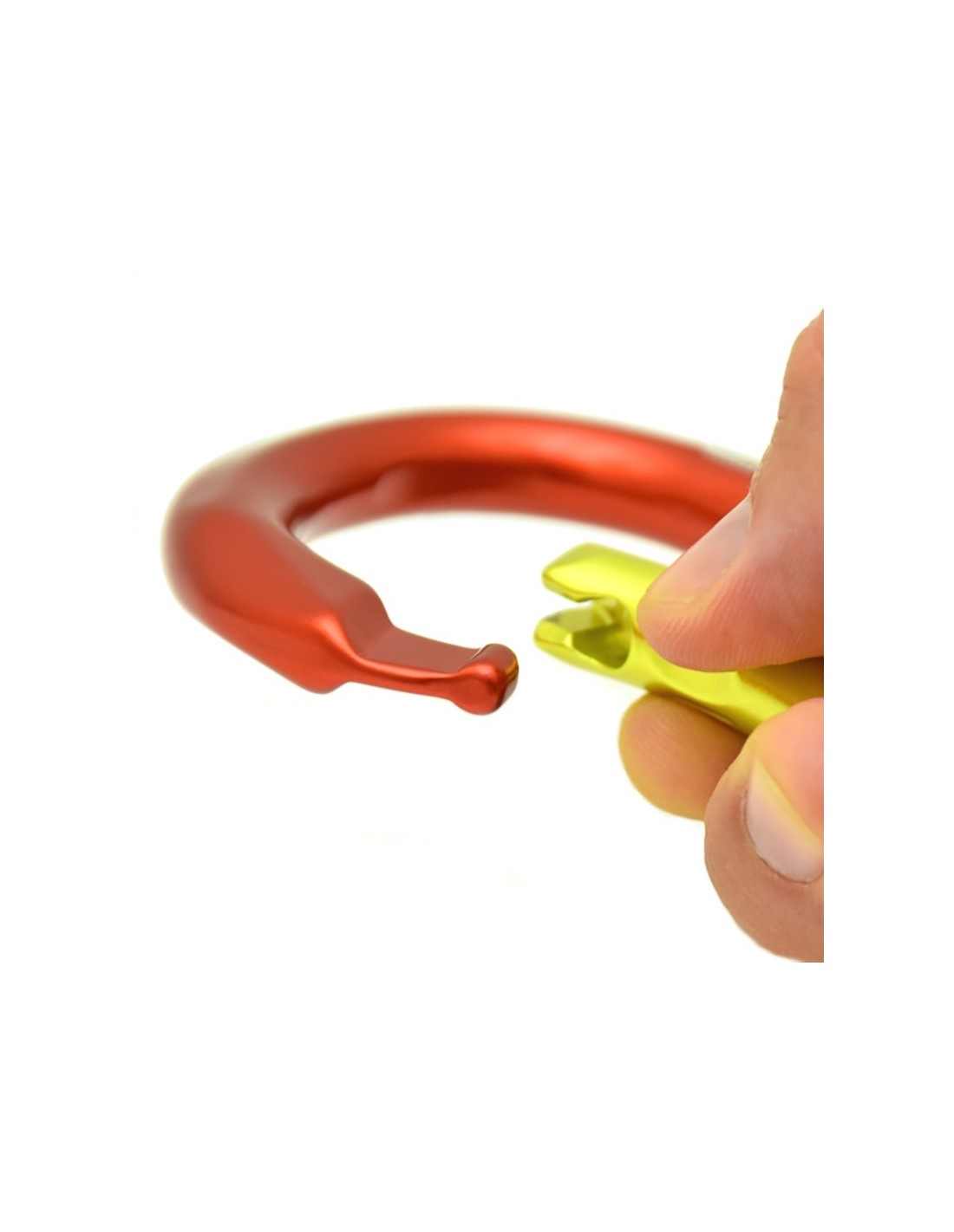 Mosquetón simple de aluminio con gatillo curvo y amplia apertura.