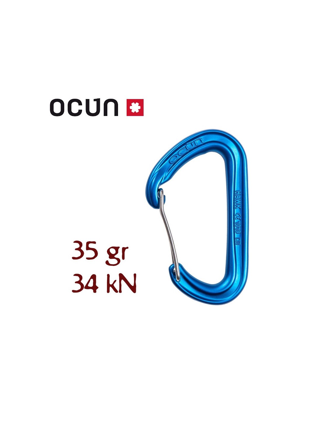 Hawk es un mosquetón ligero apto para equipar rutas. Su cuerpo asimétrico y su reducido peso lo hacen especialmente indicado para la escalada deportiva.