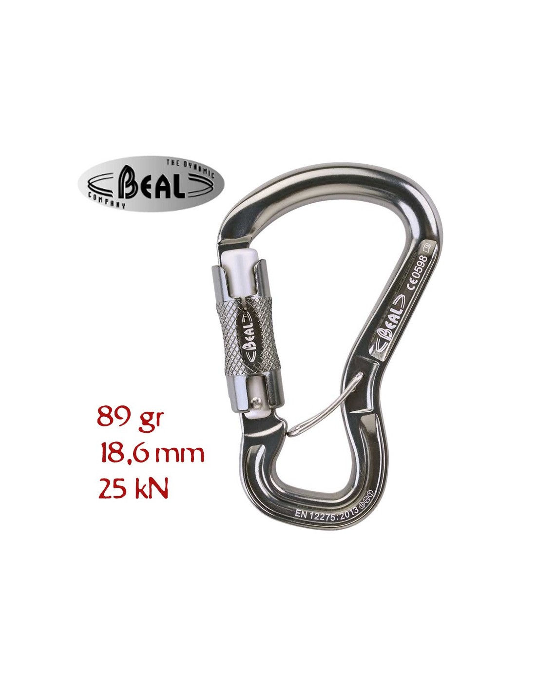 Mosquetón de seguridad diseñado especialmente para asegurar. Gracias a el gatillo por el que pasamos la anilla ventral de nuestro arnés, el mosquetón no se moverá mientras estamos asegurando.