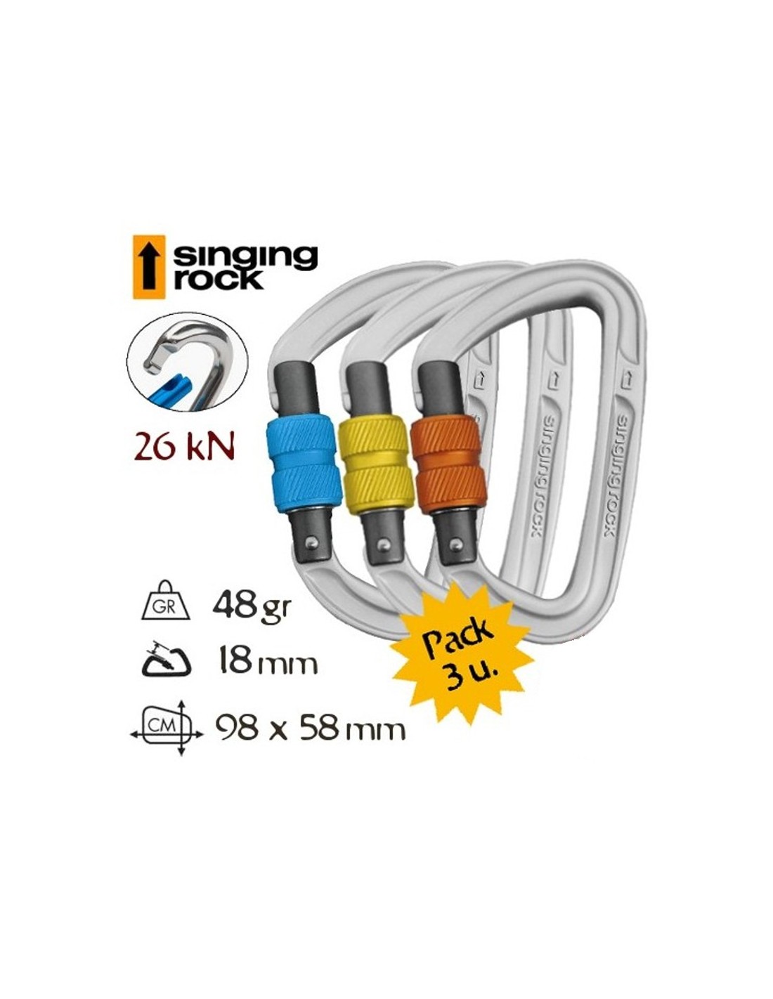PACK DE 3 MOSQUETONES DE ROSCA COLT DE SINGING ROCK con cierre Key-Lock