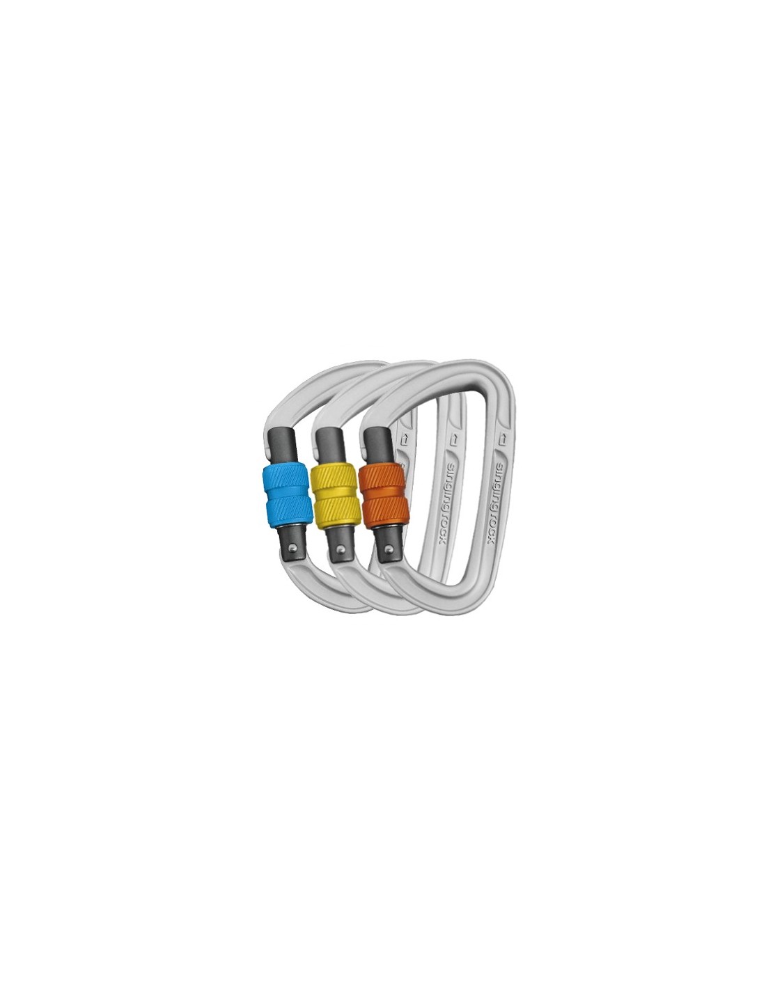 Pack ahorro compuesto por 3 mosquetones de seguridad a rosca modelo Colt de Singing Rock, colores aleatorios.