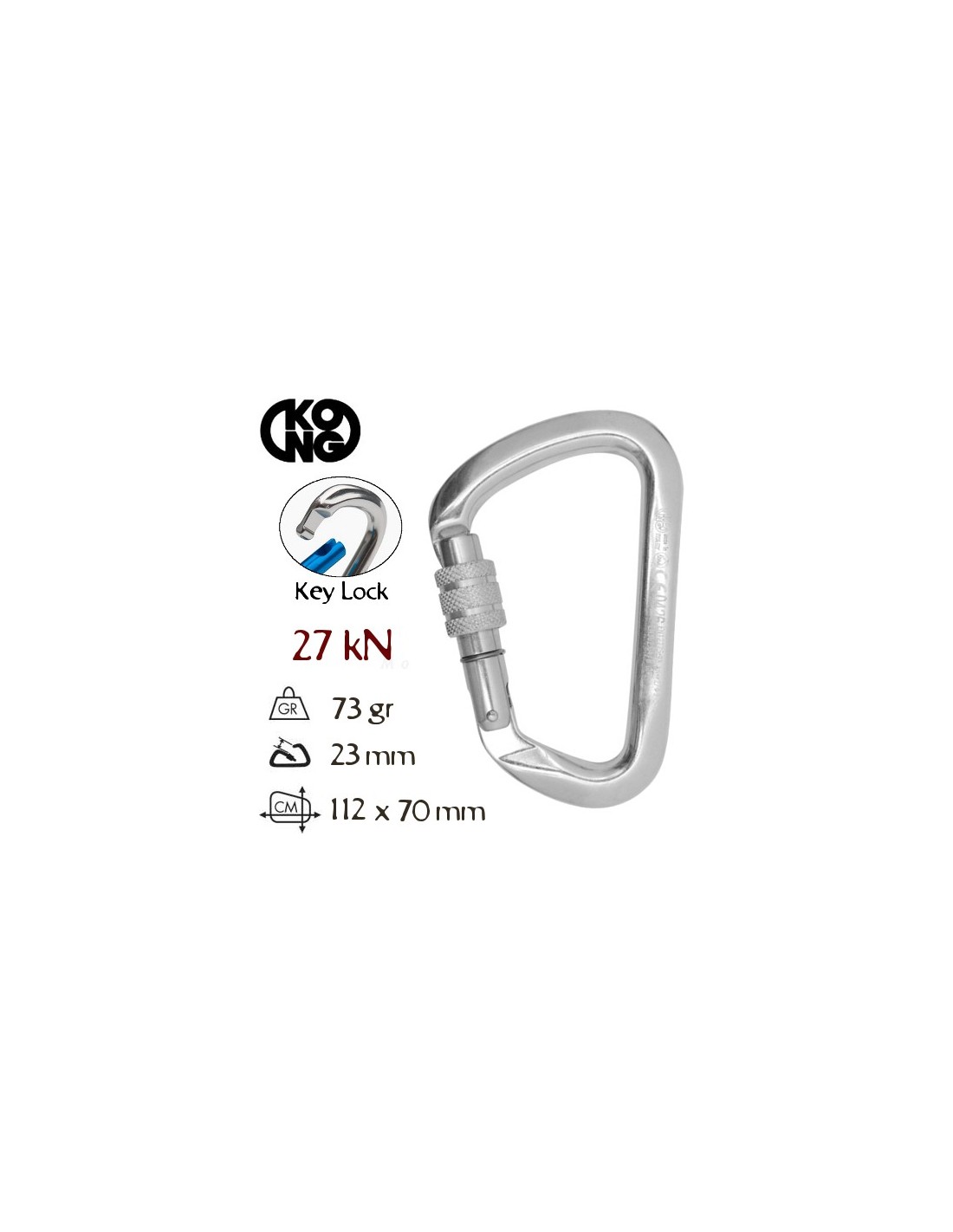 El Large multiuse de Kong es un mosquetón de seguridad a rosca, que se caracteriza por sus grandes dimensiones y gran apertura.