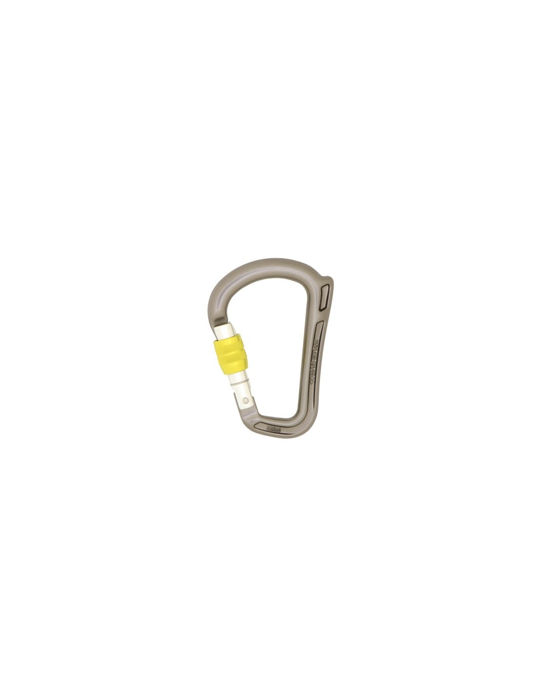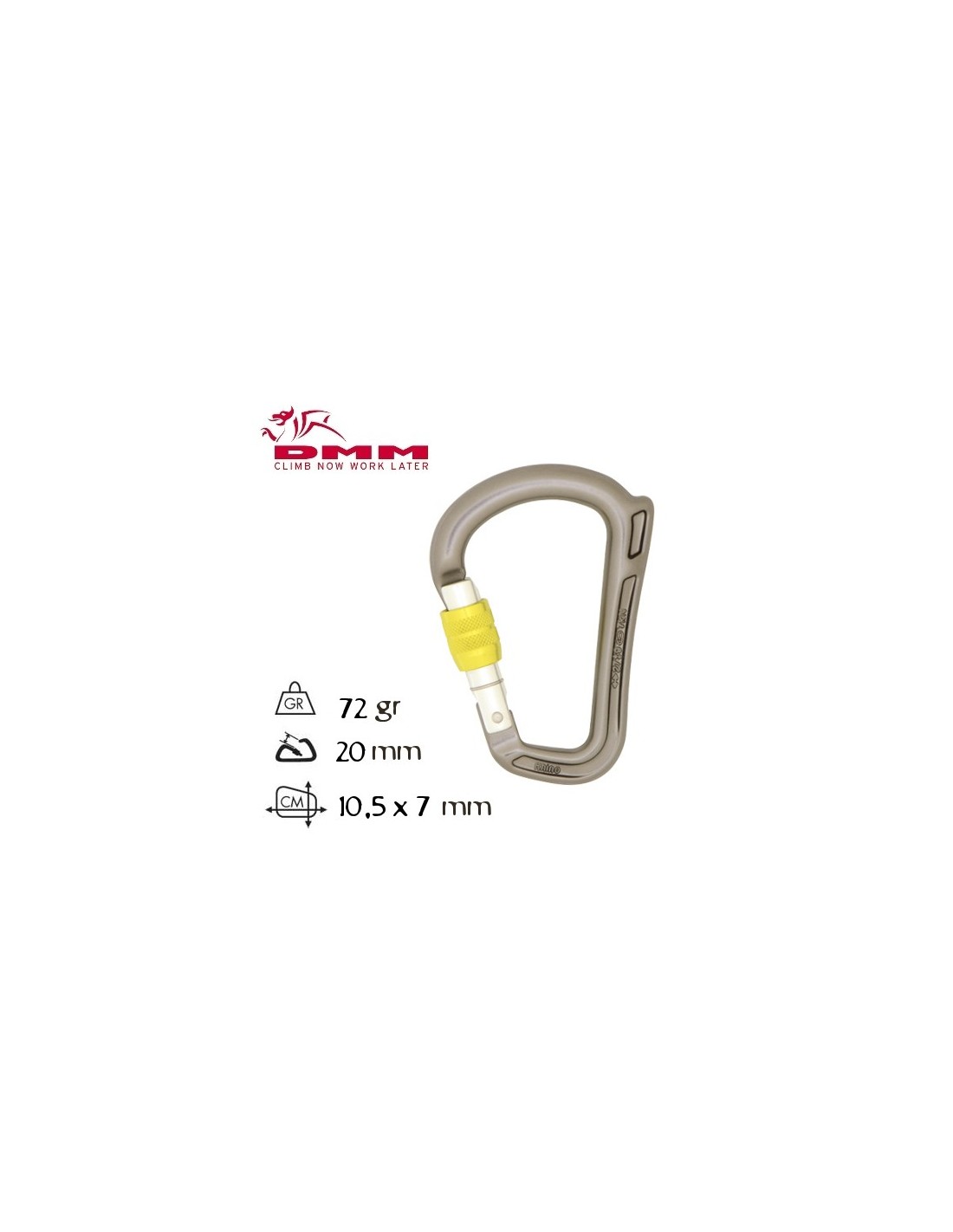 El mosquetón Rhino de la marca DMM. Especialmente diseñado para dispositivos de aseguramiento tipo grigri ya que dispone de un cuerno que evita el posicionamiento fuera del eje principal del dispositivo de aseguramiento.
