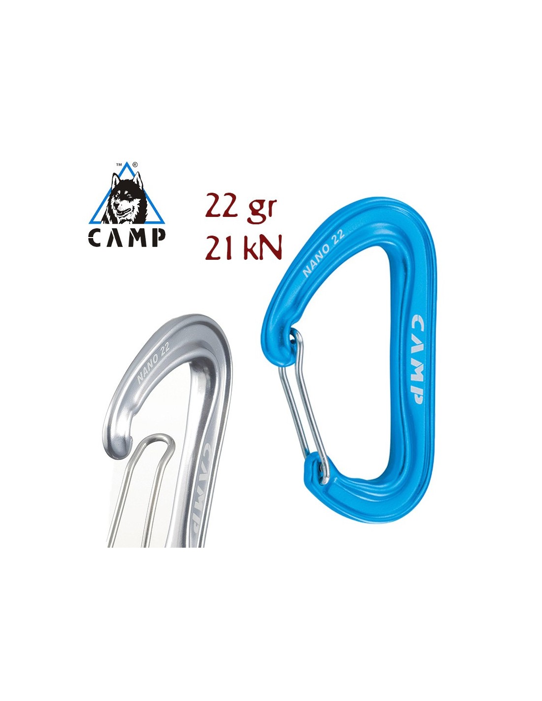 Este modelo presenta menor peso y es que se han reducido las secciones y no a una reducción de su tamaño. Sus excepcionales características mecánicas convierten a Nano 22 en el mosquetón ideal para el alpinismo y la escalada tradicional, donde menor peso significa mayor probabilidad de éxito.