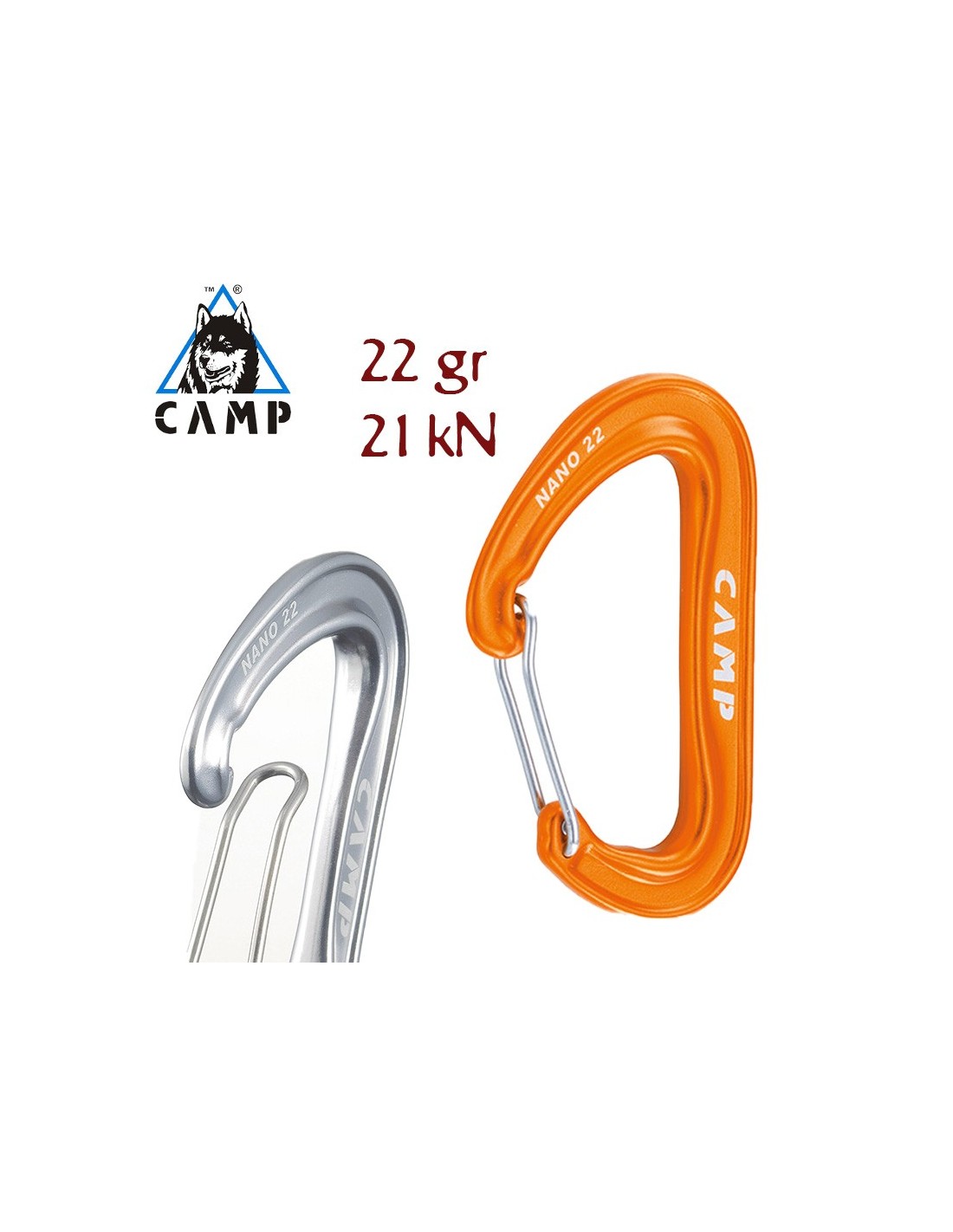 Este modelo presenta menor peso y es que se han reducido las secciones y no a una reducción de su tamaño. Sus excepcionales características mecánicas convierten a Nano 22 en el mosquetón ideal para el alpinismo y la escalada tradicional, donde menor peso significa mayor probabilidad de éxito.