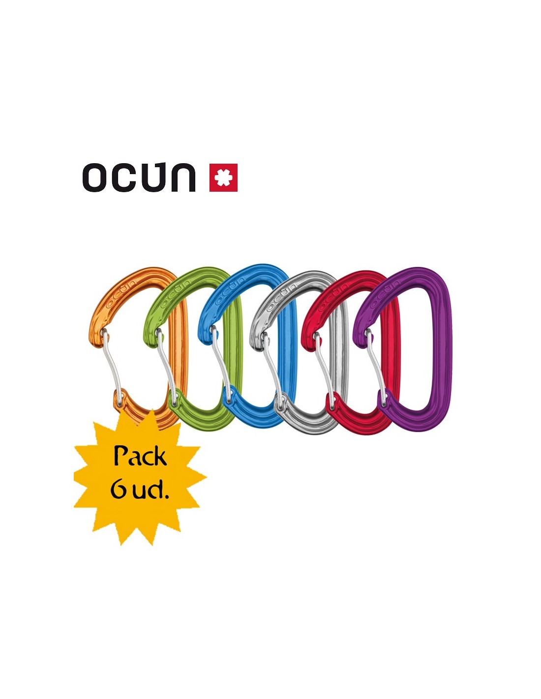 Pack ahorro de material de escalada compuesto por los siguientes elementos:- 3 Mosquetones de rosca pequeños y ligeros Hawk Screw - Ocun