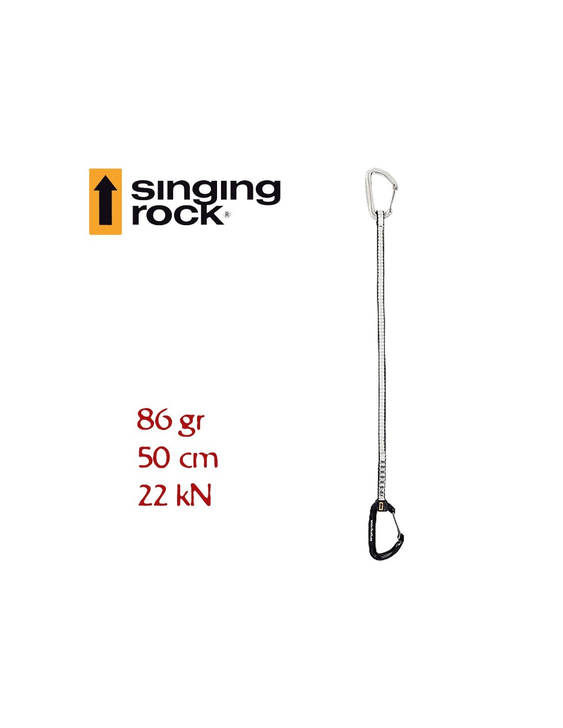 - Resistencia: 22 kN la cinta - Mosquetones 25 - 8 - 8 kN