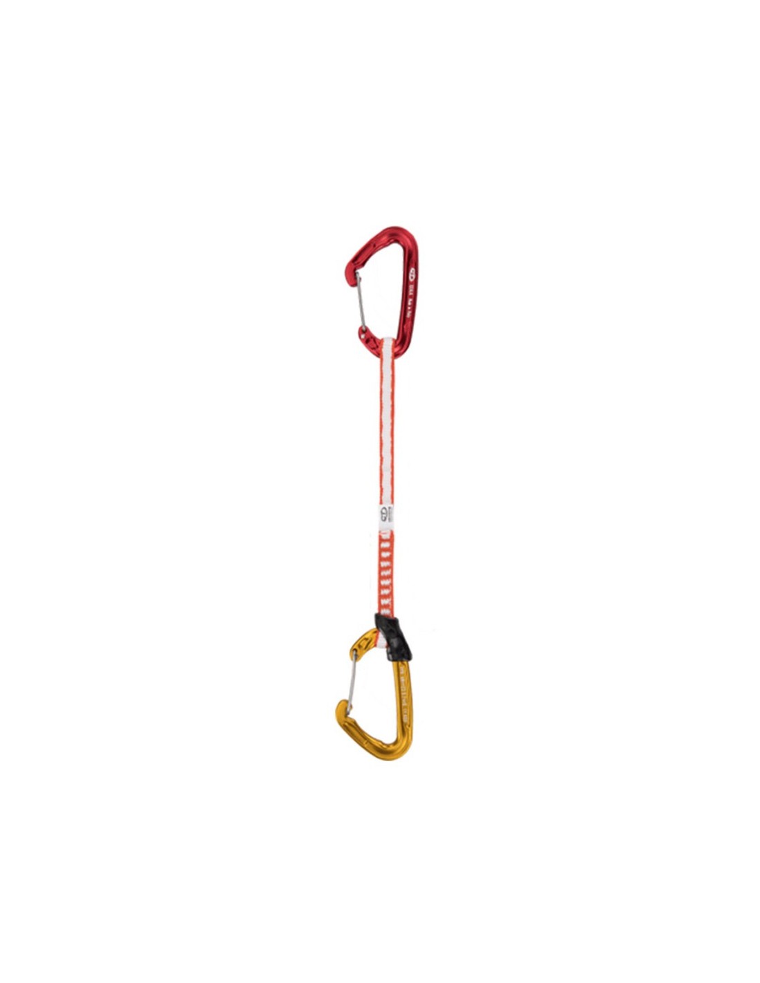 Dotada de mosquetones forjados en caliente con cierre de alambre y de dimensiones extremadamente compactas, que facilitan la inserción/extracción de la cuerda. El cierre de alambre facilita la inserción de la cuerda y evita la oscilación del gatillo durante un posible impacto contra la roca.