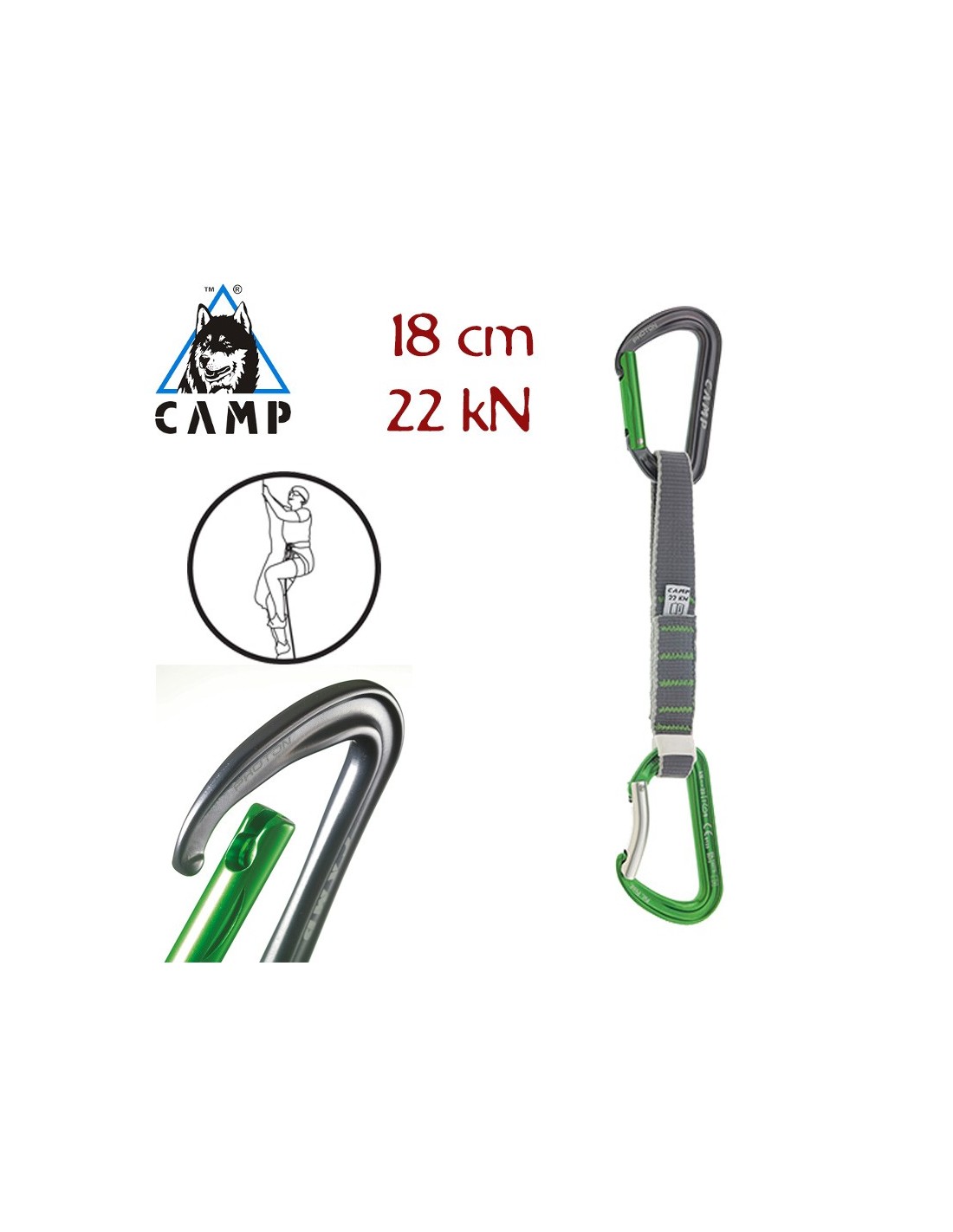 - Cuenta con el retenedor de mosquetón patentado Karstop Evo en el extremo de la cinta.