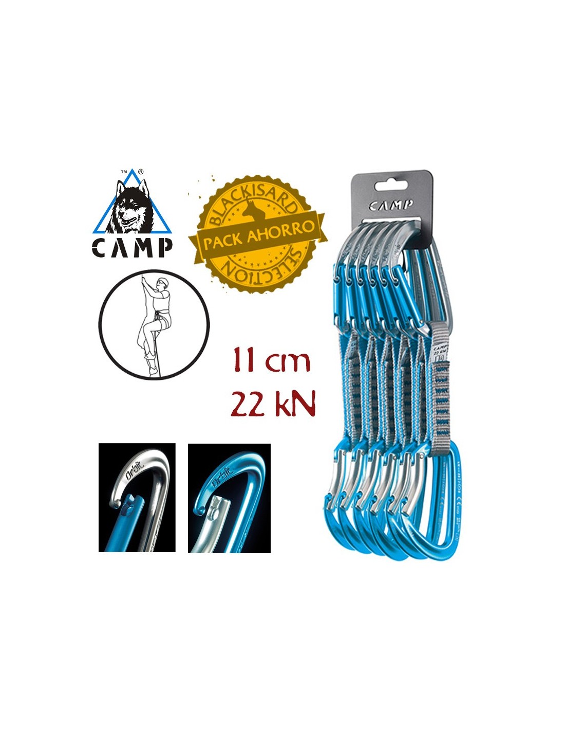 - Con mosquetón Orbit de palanca recta para los anclajes y mosquetón Orbit de palanca curva para la cuerda.
