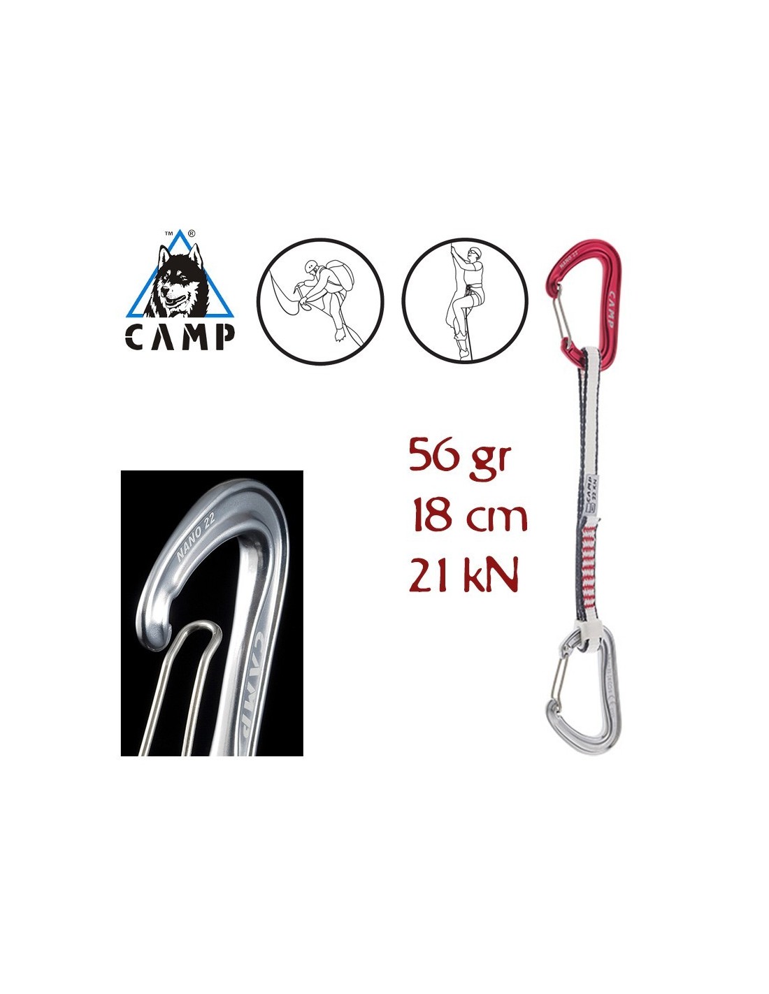 - Cintaa de Dyneema® de 11 mm (longitud 18 cm) con bloqueador de mosquetón Karstop Evo integrado.