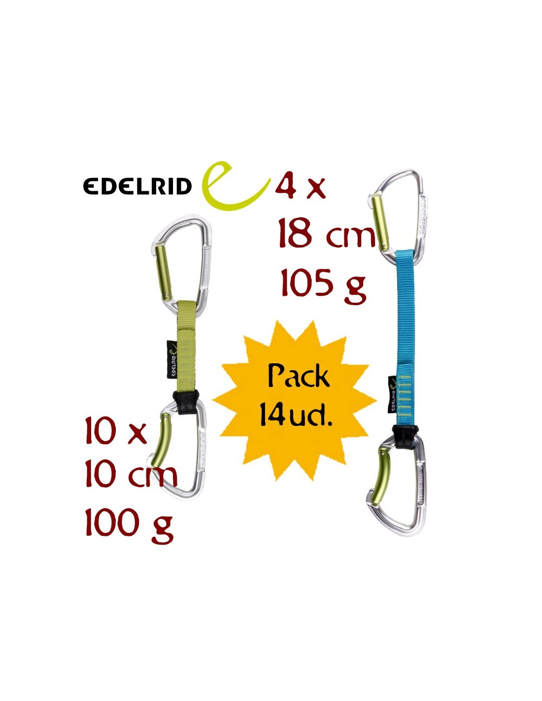 Pack ahorro de material de escalada compuesto por 14 cintas express de distintas medidas: