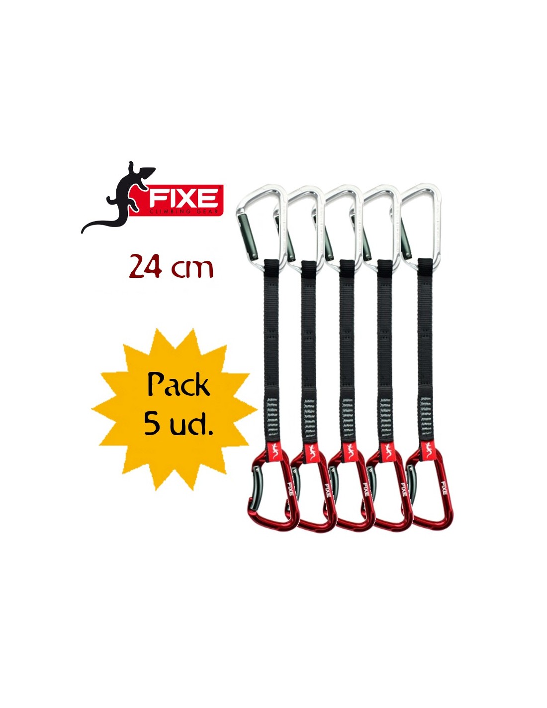 La cinta exprres montgrony de fixe es una express de deportiva, formada por una cinta de poliéster de 16 mm de ancho y 24cm de largo y dos mosquetones FIXE modelo MONTGRONY uno recto y el otro curvo.