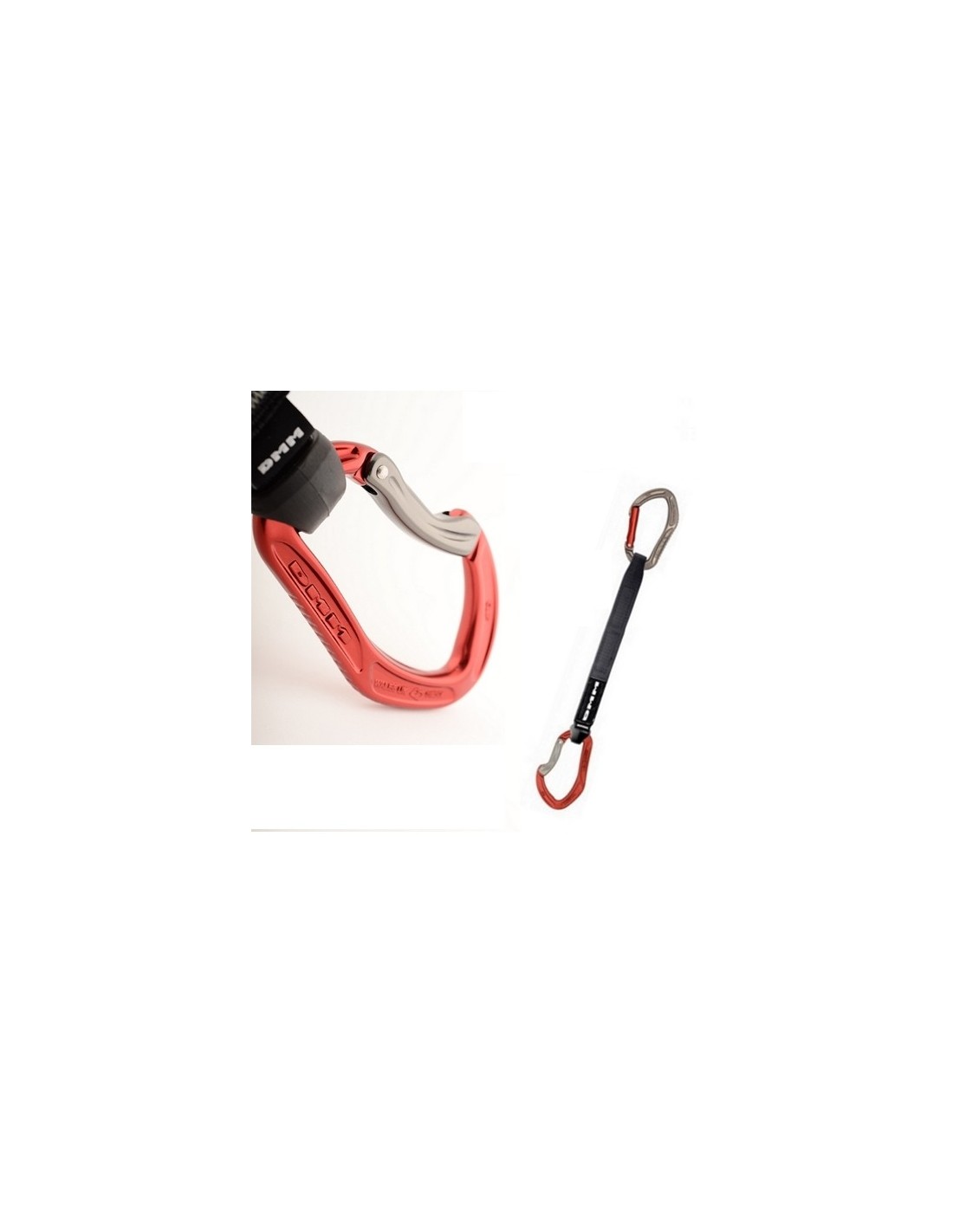 Cinta express de la marca DMM compuesta por el mosquetón Alpha Pro en la parte superior y el mosquetón Alpha Clip en la parte inferior, unidos por una cinta de nylon, resistente y segura.