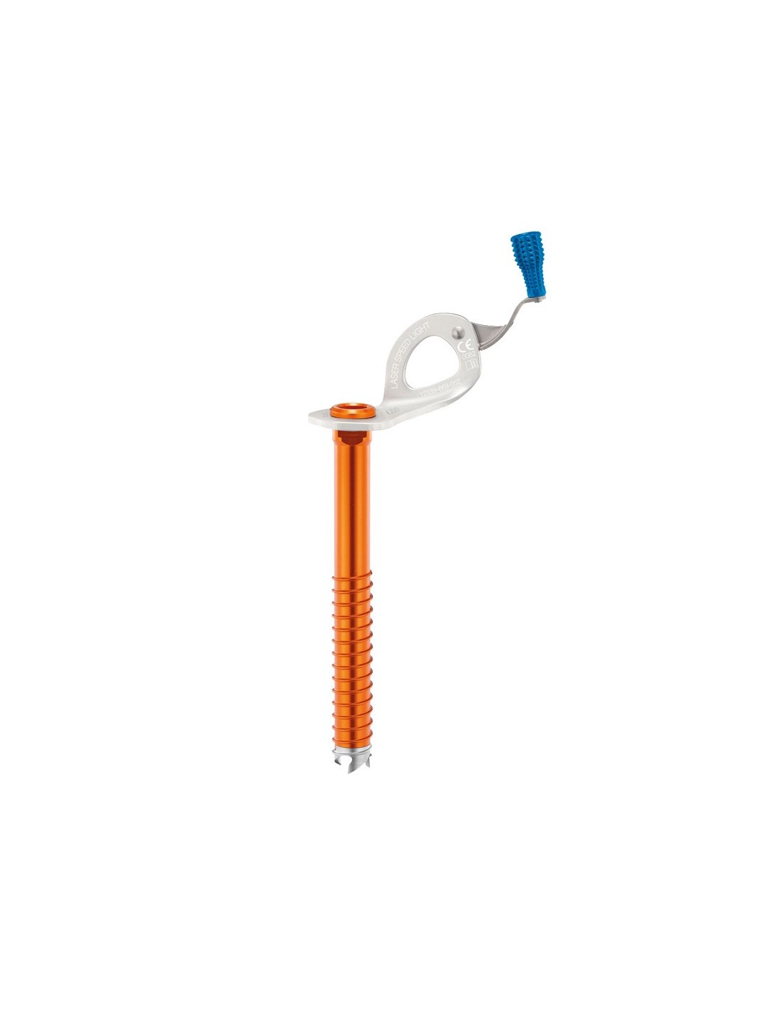 Tornillo para hielo de la marca Petzl, modelo Laser Speed Light, ultraligero, sólo 100 g, para llevar el mínimo peso en alpinismo.