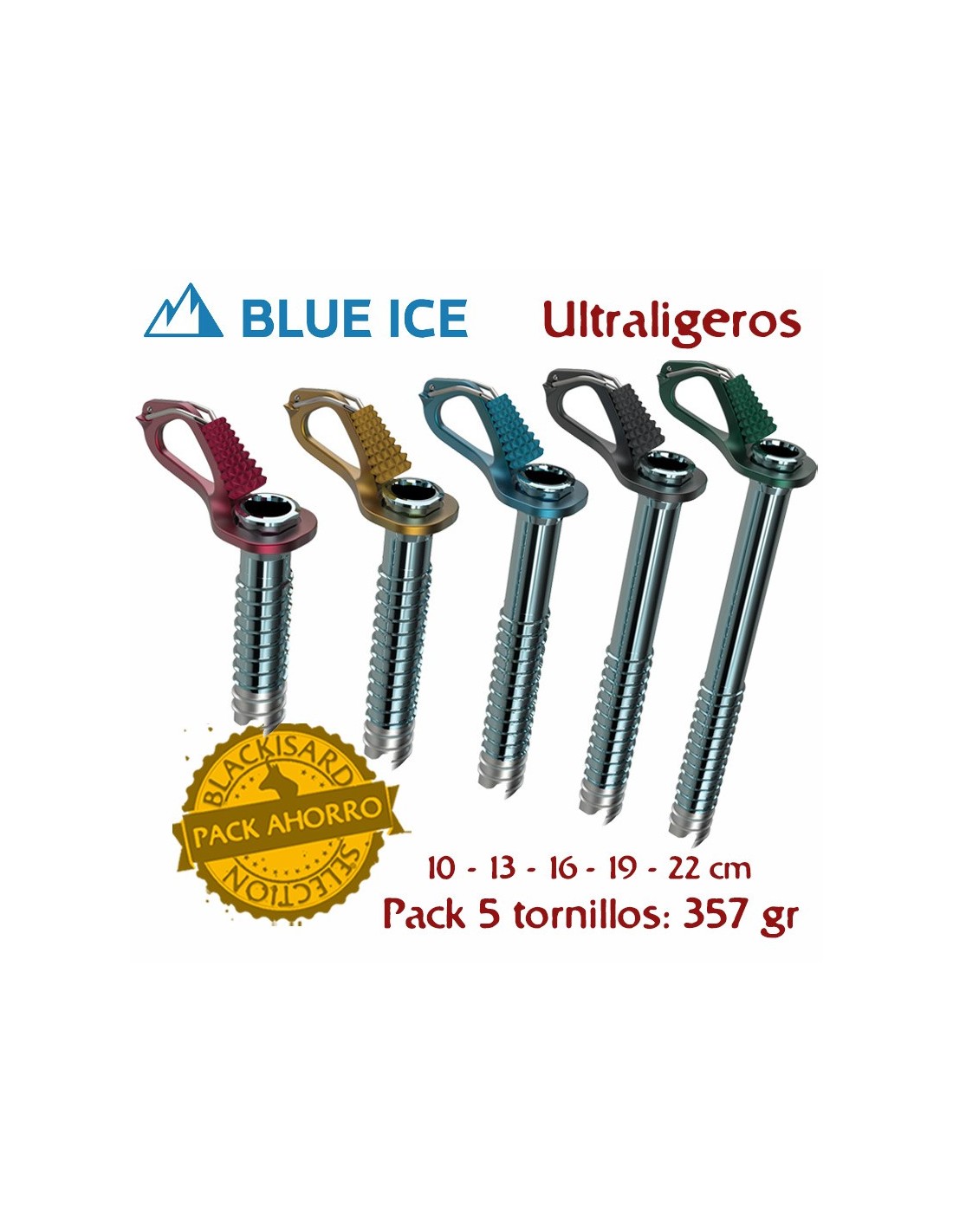 PACK 5 AERO LITE (10-13-16-19-22 CM) - TORNILLOS DE HIELO ULTRALIGEROS - BLUE ICE
