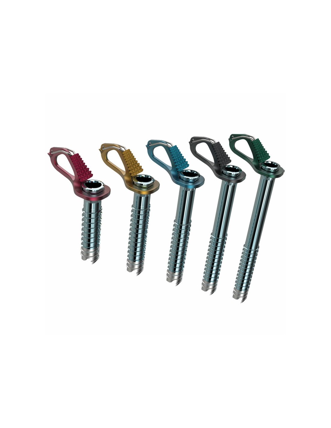- Manivela y colgador revestidos de color para identificar fácilmente la longitud del tornillo.
