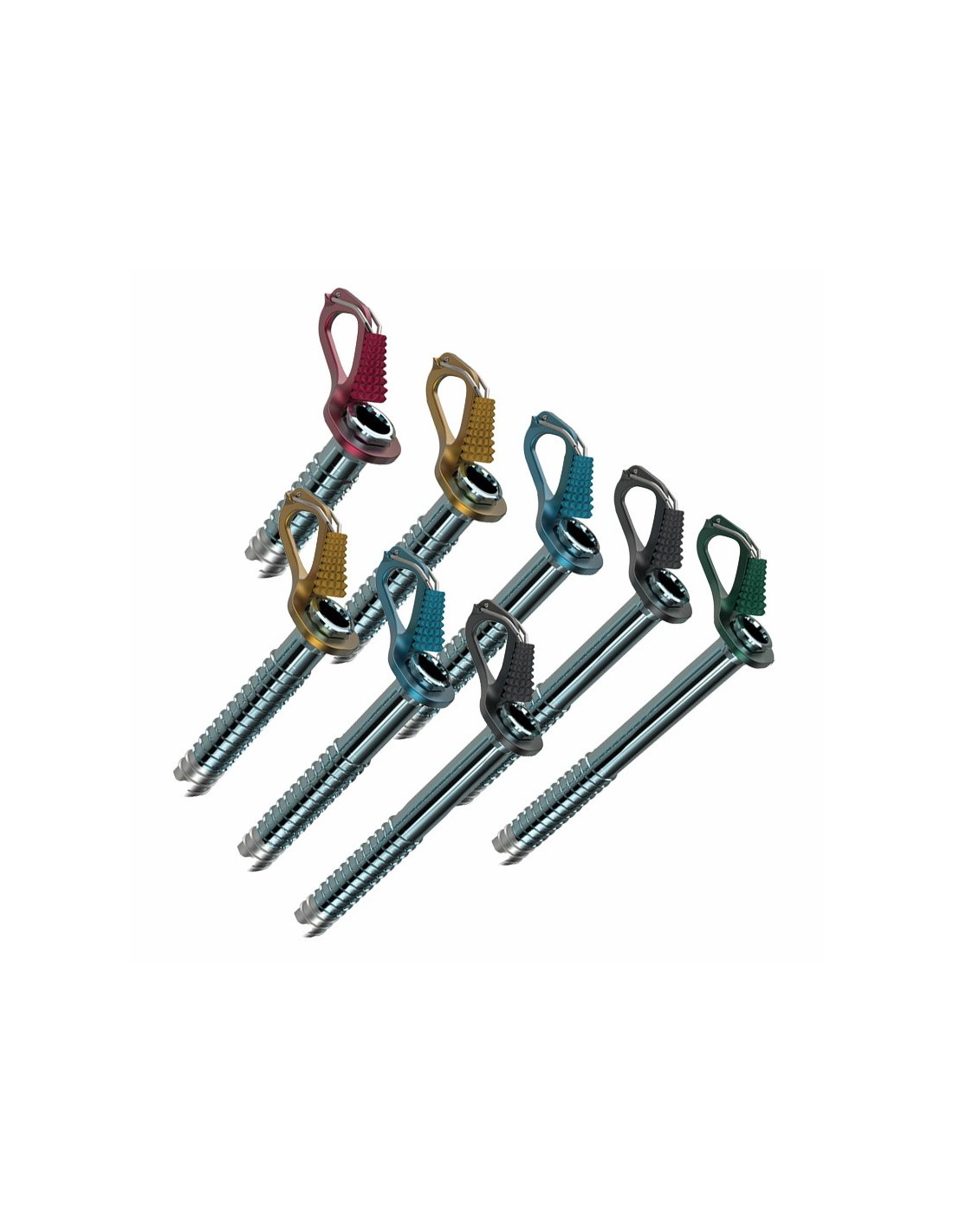 - Manivela y colgador revestidos de color para identificar fácilmente la longitud del tornillo.