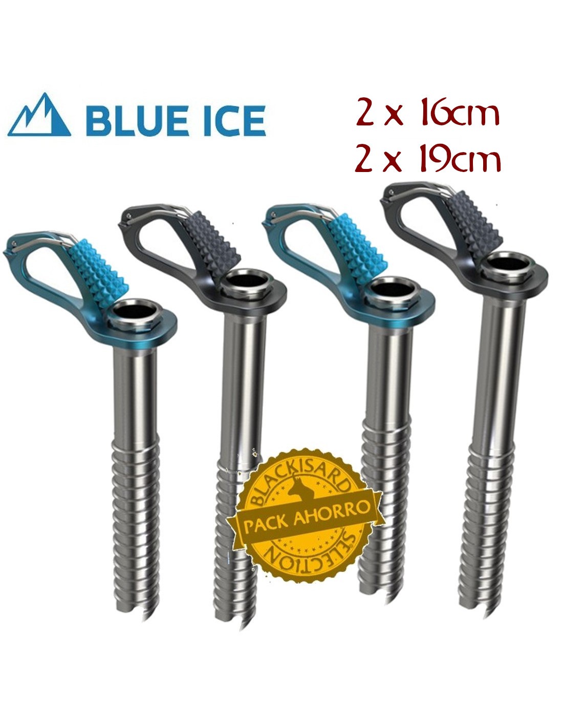 PACK 4 AERO ICE SCREW (2X16CM + 2X19CM) - TORNILLO DE HIELO CON MANIVELA - BLUE ICE