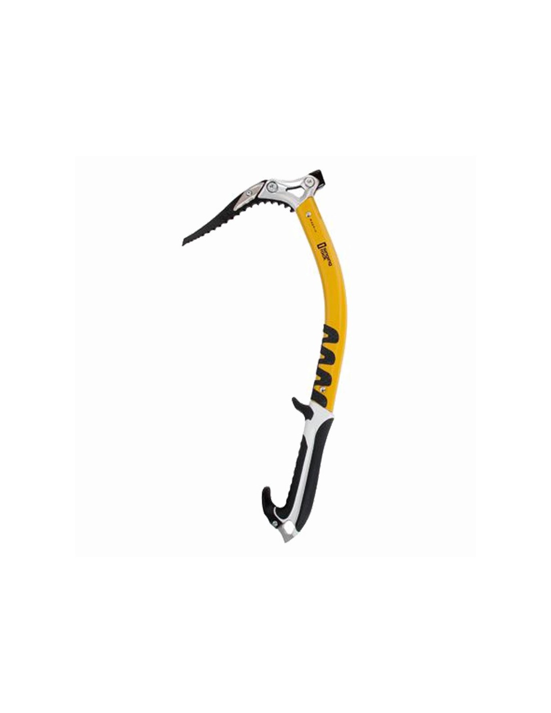 Gracias a su diseño modular, este piolet puede adaptarse dependiendo del tipo de ascensión que vayas a realizar. Su mango curvado permite clavarlo fácilmente creando un ángulo de agarre óptimo.