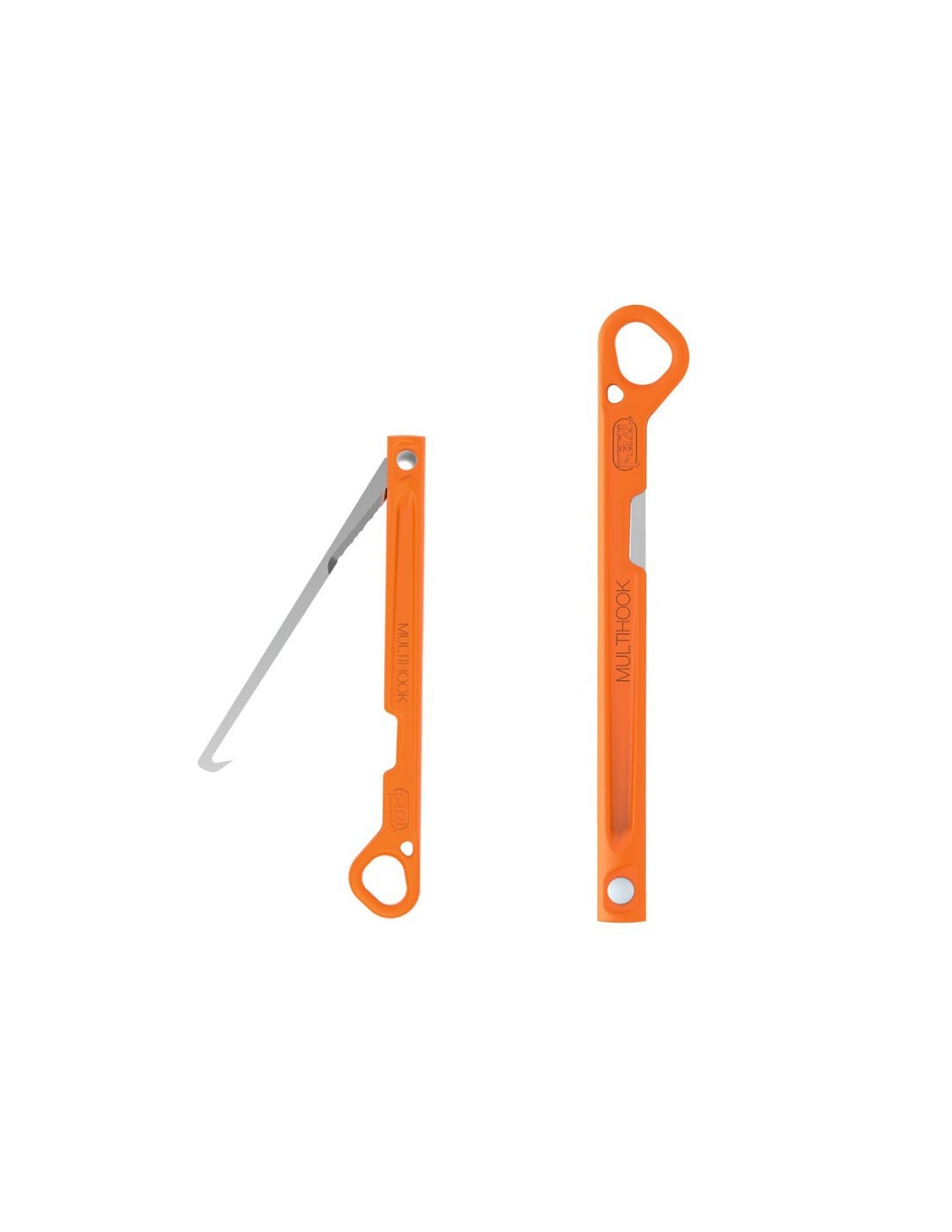 Diseñado para los glaciaristas, el gancho MULTIHOOK permite ganchear el cordino para la instalación de Abalakovs en hielo. Está equipado con una hoja dentada para cortar fácilmente las cuerdas y cordinos. También se puede utilizar para vaciar los tornillos para hielo. El MULTIHOOK se puede plegar y mosquetonear, facilitando así el transporte