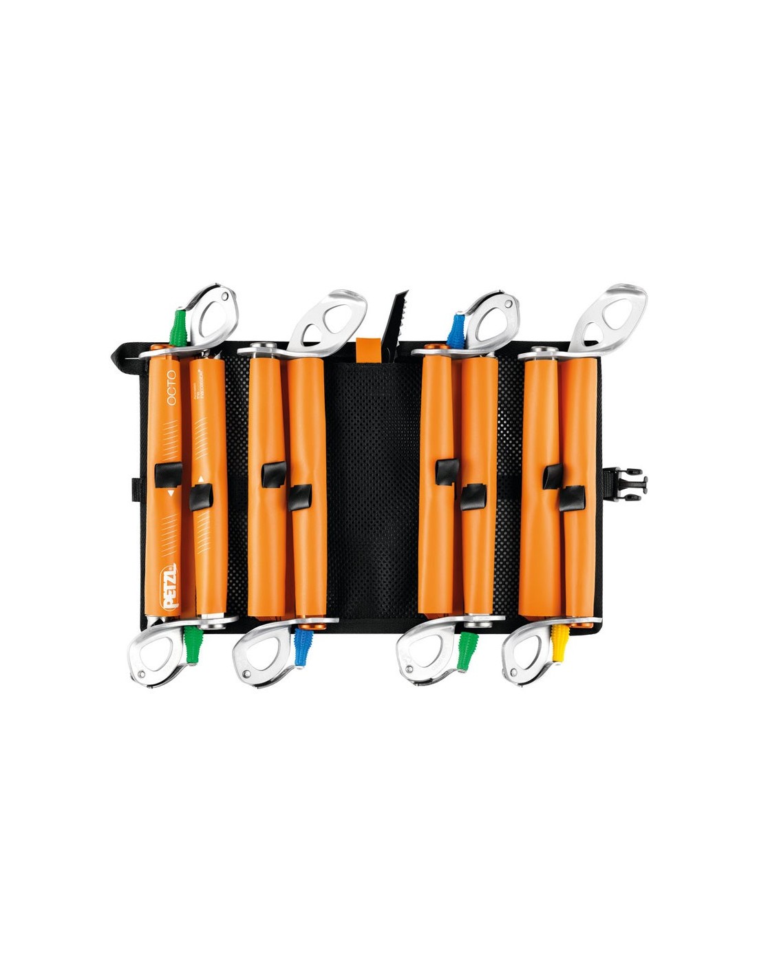 La funda OCTO está diseñada para guardar, proteger y transportar los tornillos para hielo. Dispone de ocho compartimentos para un set completo hasta doce tornillos y un bolsillo de rejilla para los accesorios (lima, hoja de recambio...).