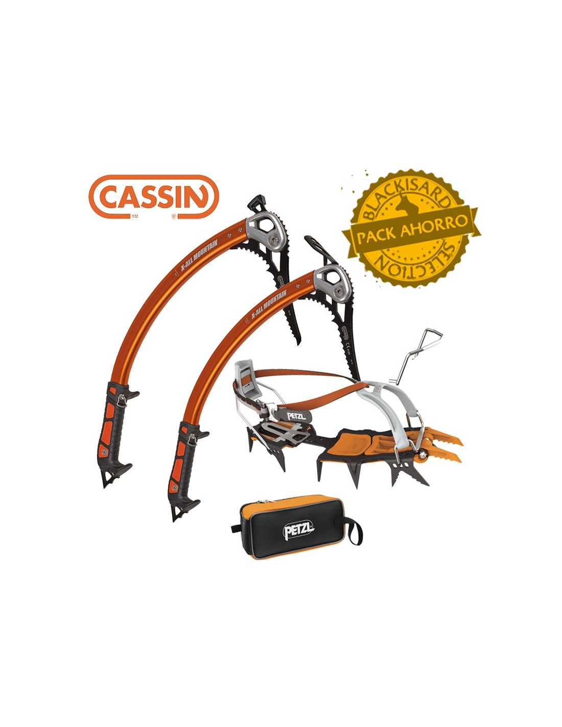 PACK 2 PIOLETS TECNICOS ESCALADA EN HIELO AX-ALL MOUNTAIN (MARTILLO Y PALA) + CRAMPONES LYNX - CASSIN / PETZL