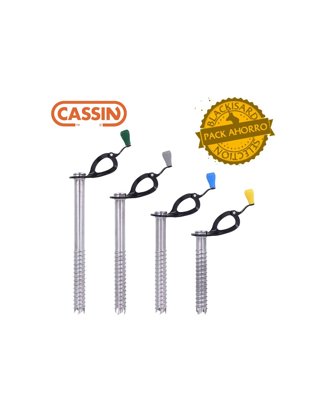 JUEGO DE 4 TORNILLOS DE HIELO ROCKET 13 - 16 - 19 - 22 CM - CASSIN