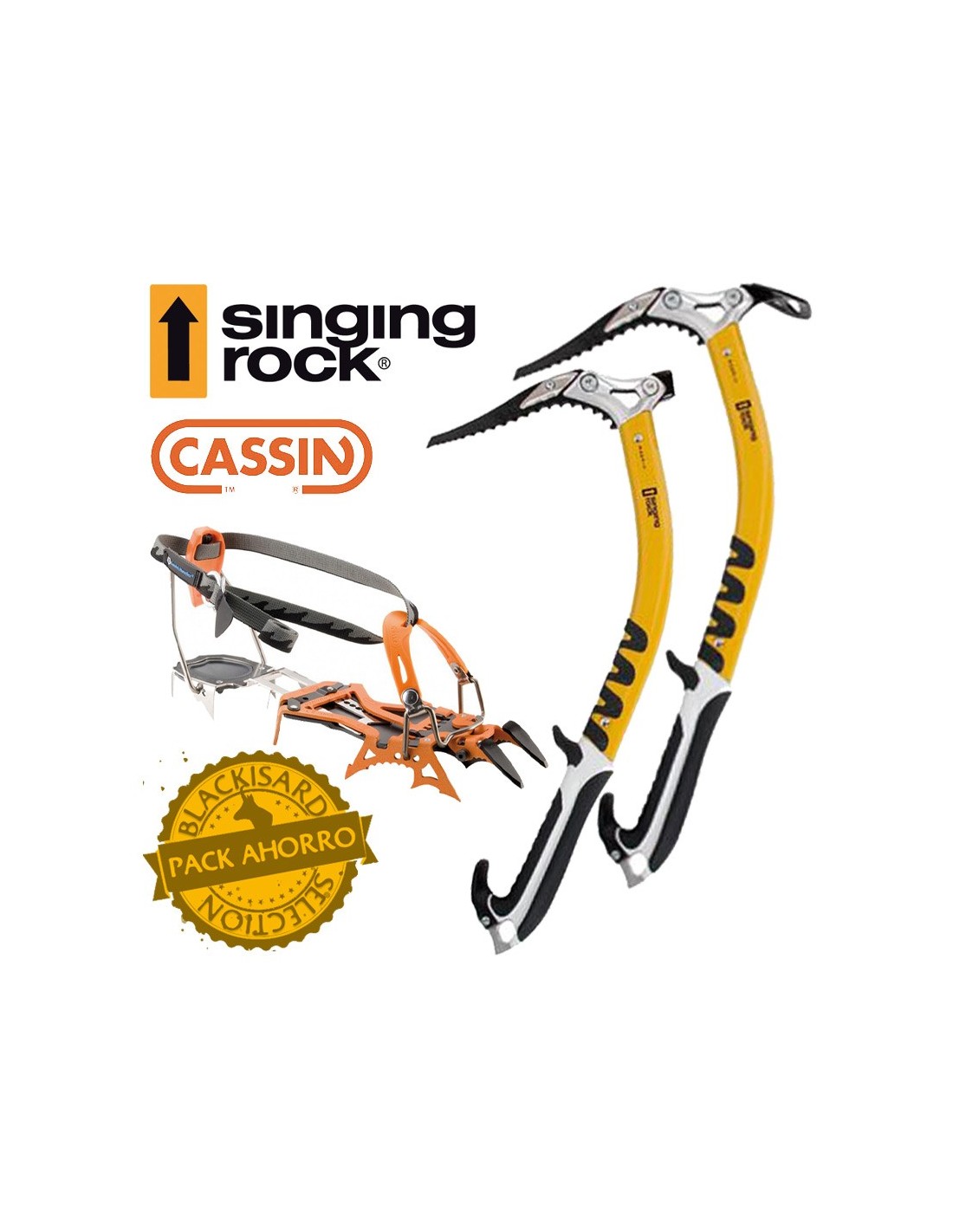 Pack ahorro de material de escalada en hielo, mixta, dry tooling, compuesto por los siguientes elementos:
