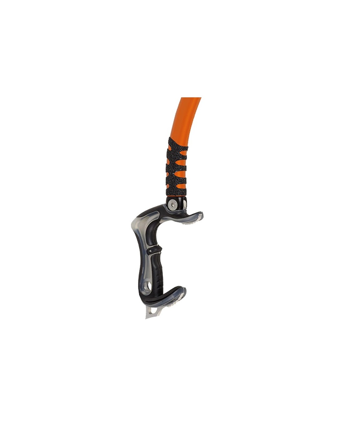 - Mango ergonómico con punta integrada y sistema de ajuste patentado que permite a los escaladores cambiar entre ángulos de hielo y seco.