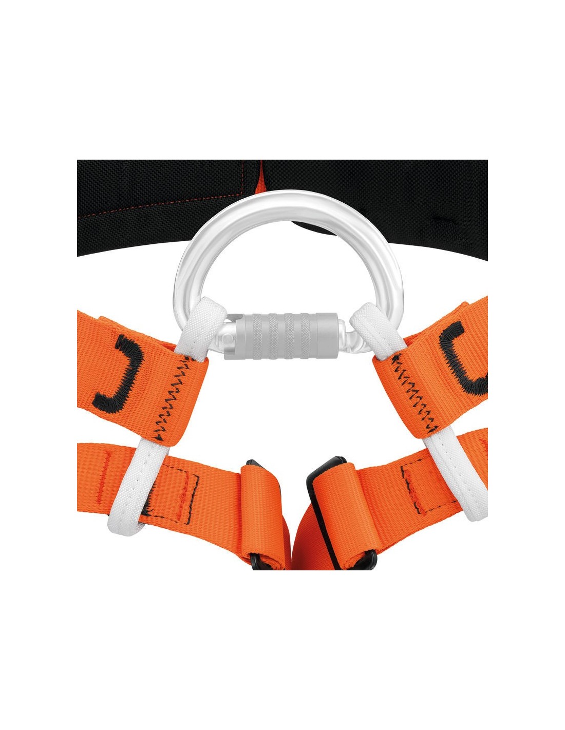 - Costuras de seguridad de colores diferentes para identificar más fácilmente la talla del arnés (costuras amarillas para la talla 1 y costuras negras para la talla 2).