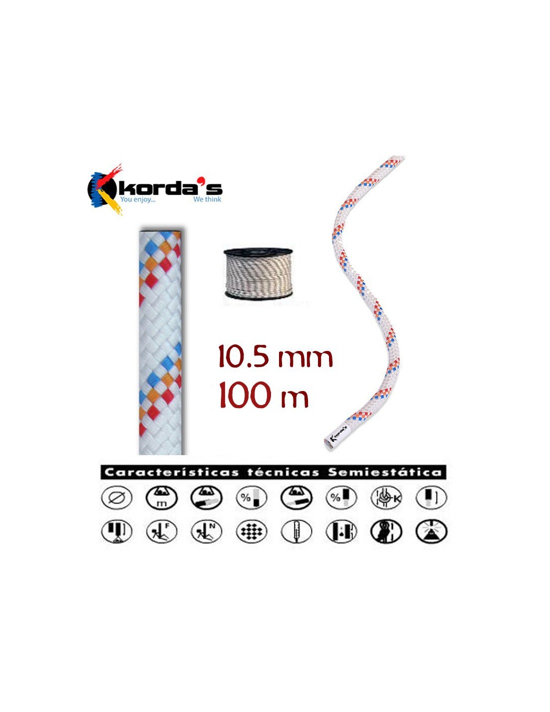 CUERDA SEMIESTATICA CON ESTABILITY LLUISA 10,5MM BLANCA (BOBINA 100M) - KORDA'S