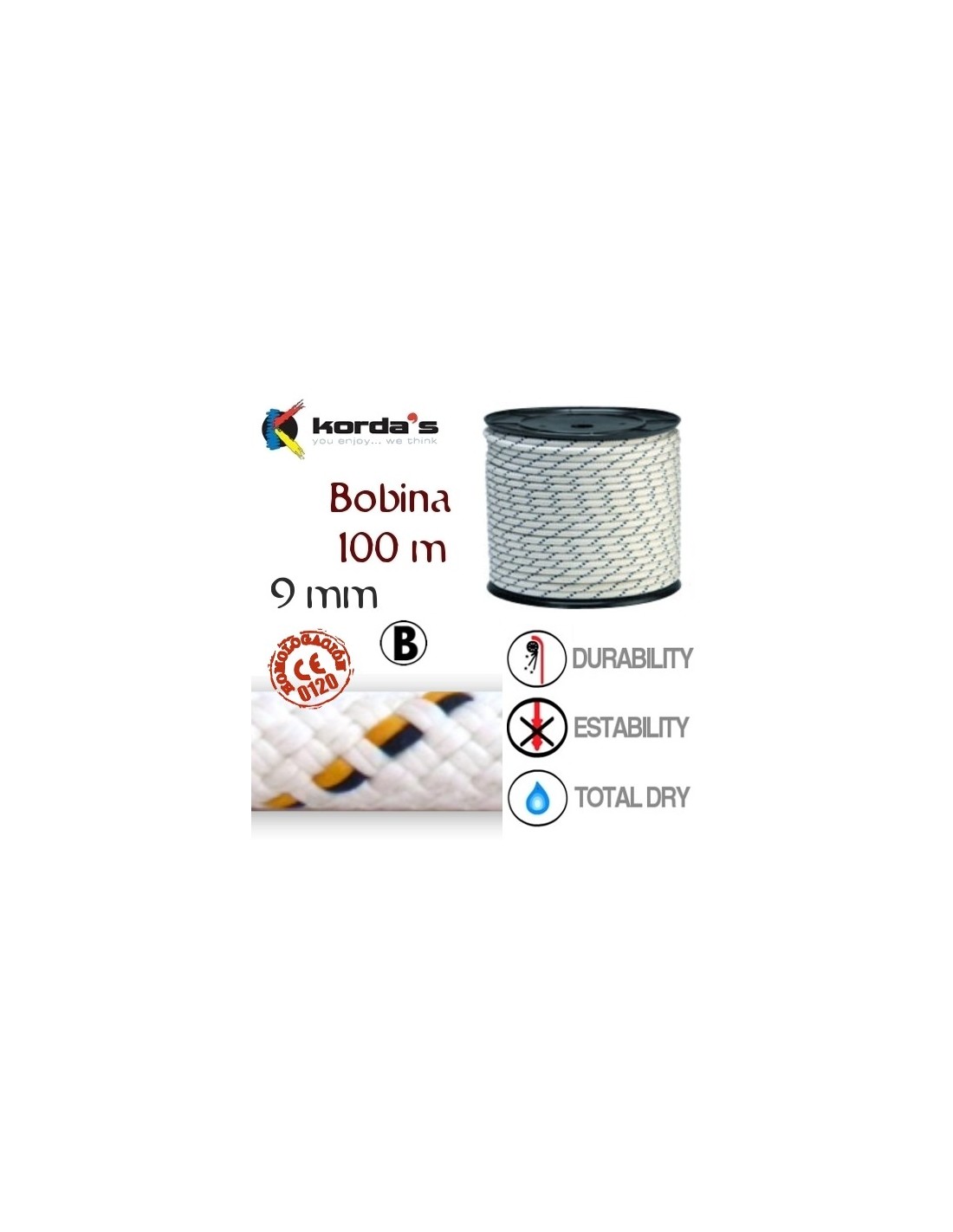 CUERDA SEMI-ESTÁTICA DANA 9mm DE KORDA'S (100 m)